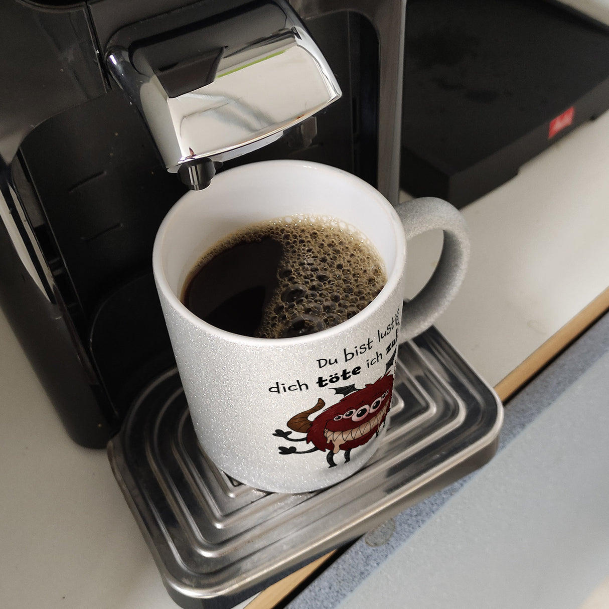 Freches Monster Kaffeebecher mit lustigem Spruch