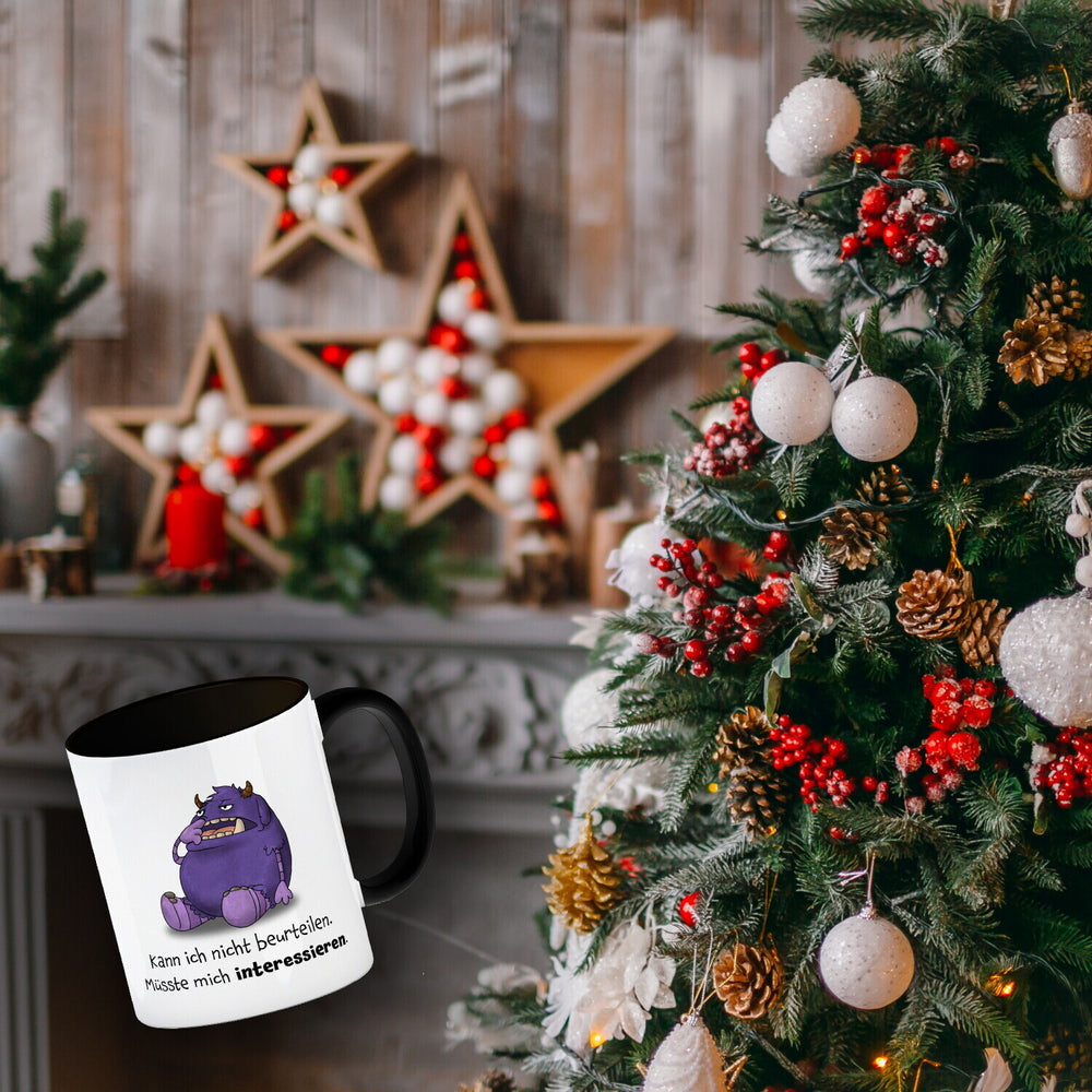 Freches Monster in dunkelrot Kaffeebecher mit lustigem Spruch