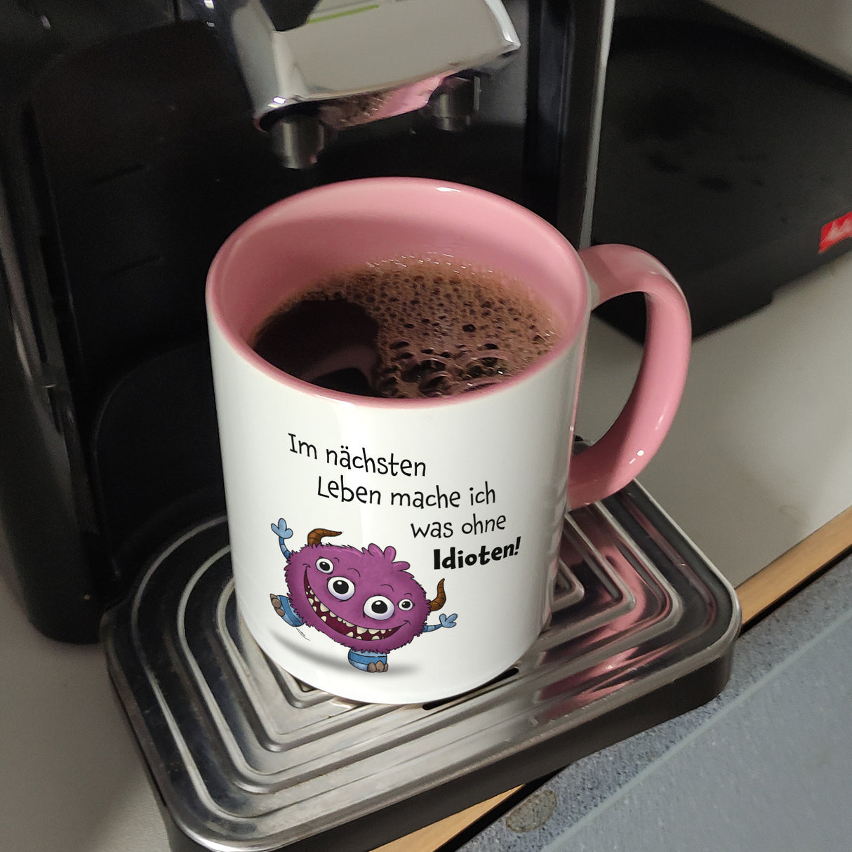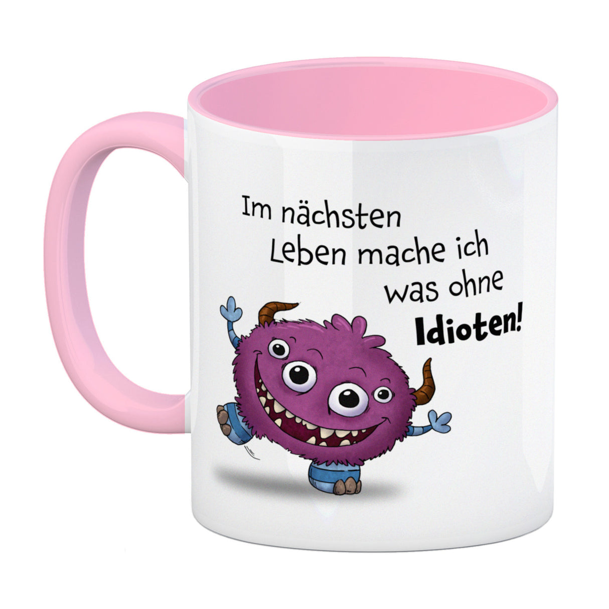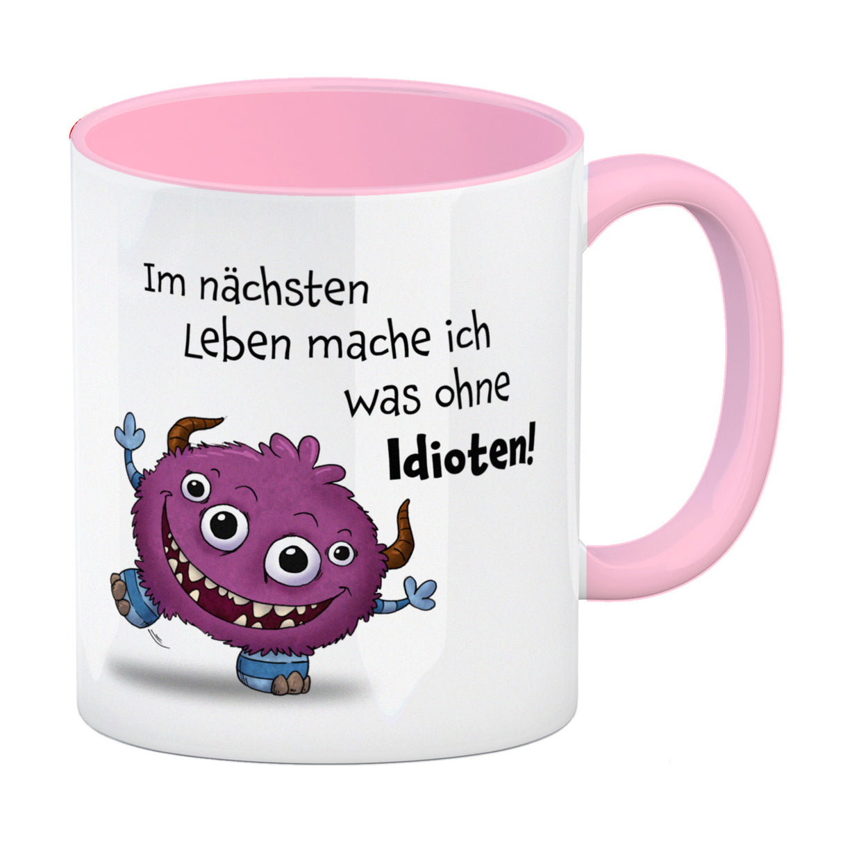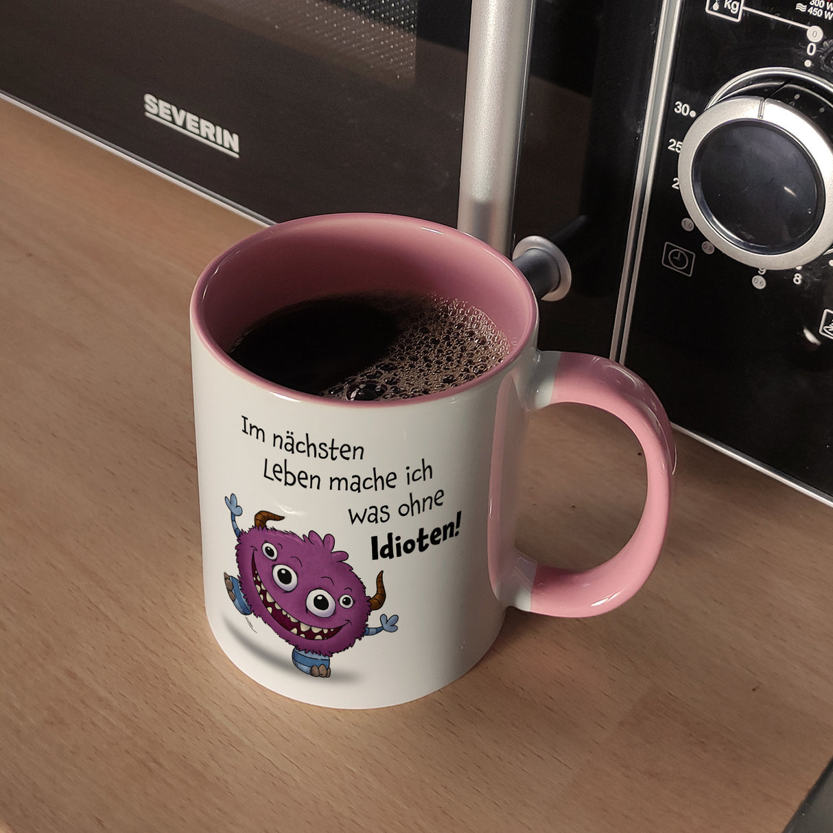 Freches Monster in pink Kaffeebecher mit lustigem Spruch