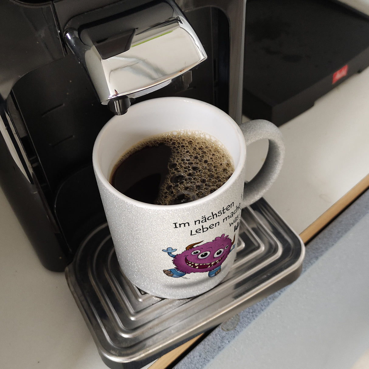 - Erhältlich in unterschiedlichen Varianten: Als weiße Standardtasse, mit farbigem Henkel und Innenseite, als edle Glastasse oder in der exklusiven Silberedition mit Glitzereffekt. Mit Sorgfalt in Handarbeit hergestellt in unserer Tassen-Manufaktur in Deutschland.