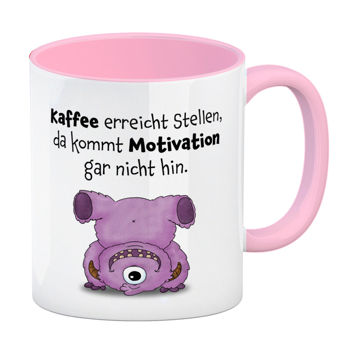 Freches Monster in pink Kaffeebecher mit lustigem Spruch