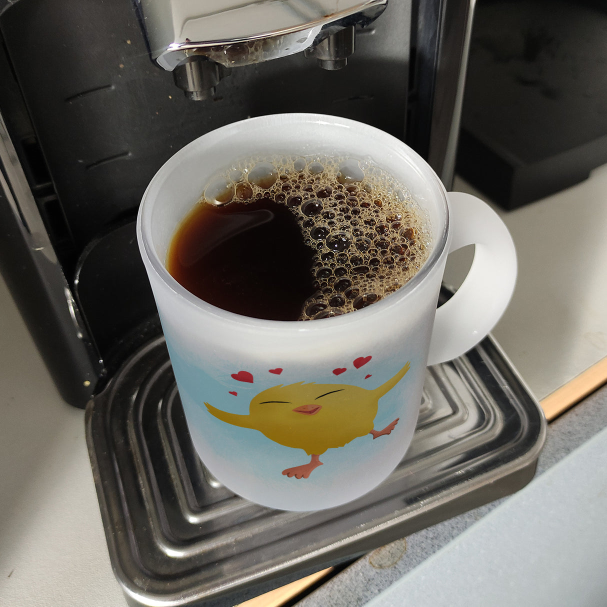 - 1x Frohe Ostern Kaffeebecher mit lustigem Küken in der gewählten Ausführung