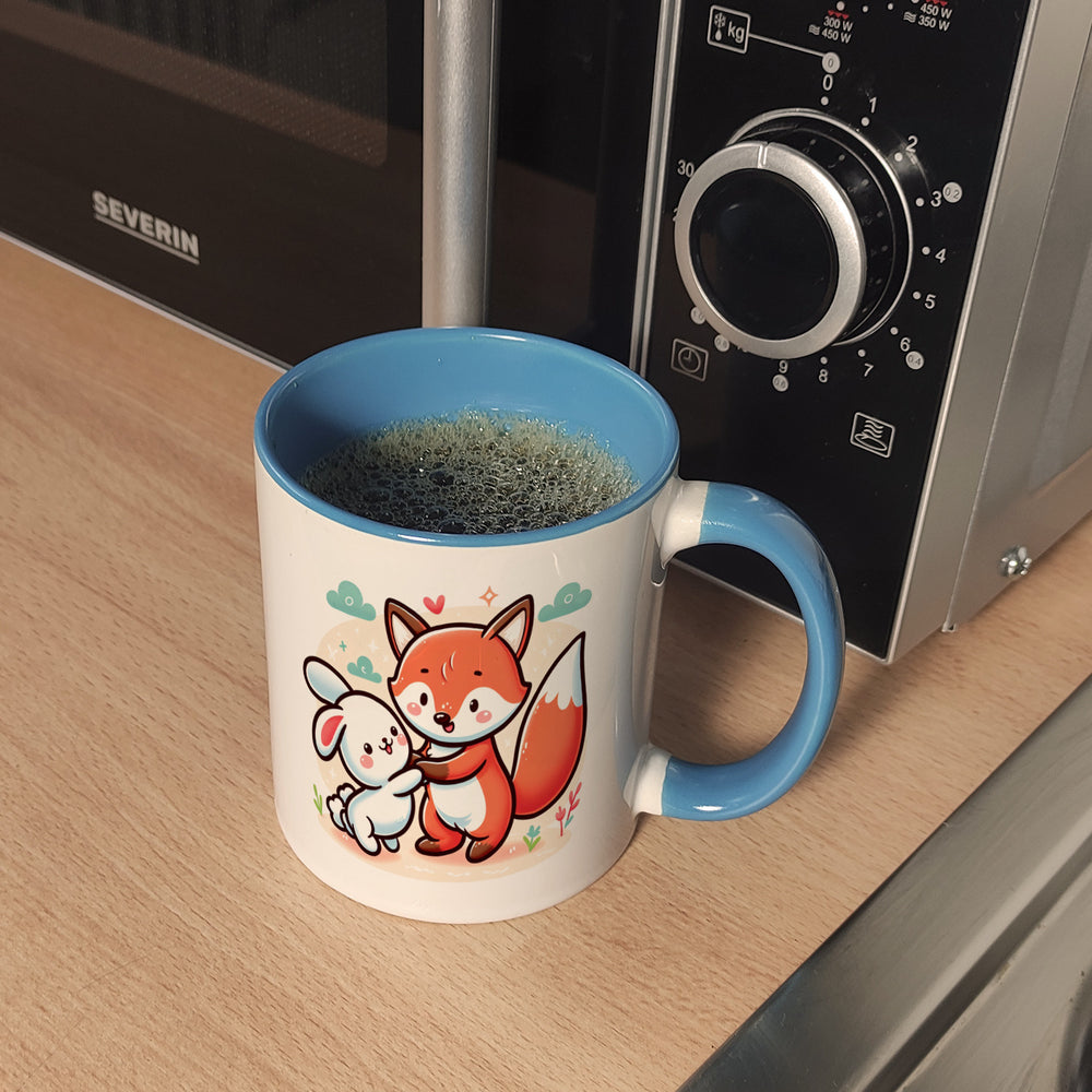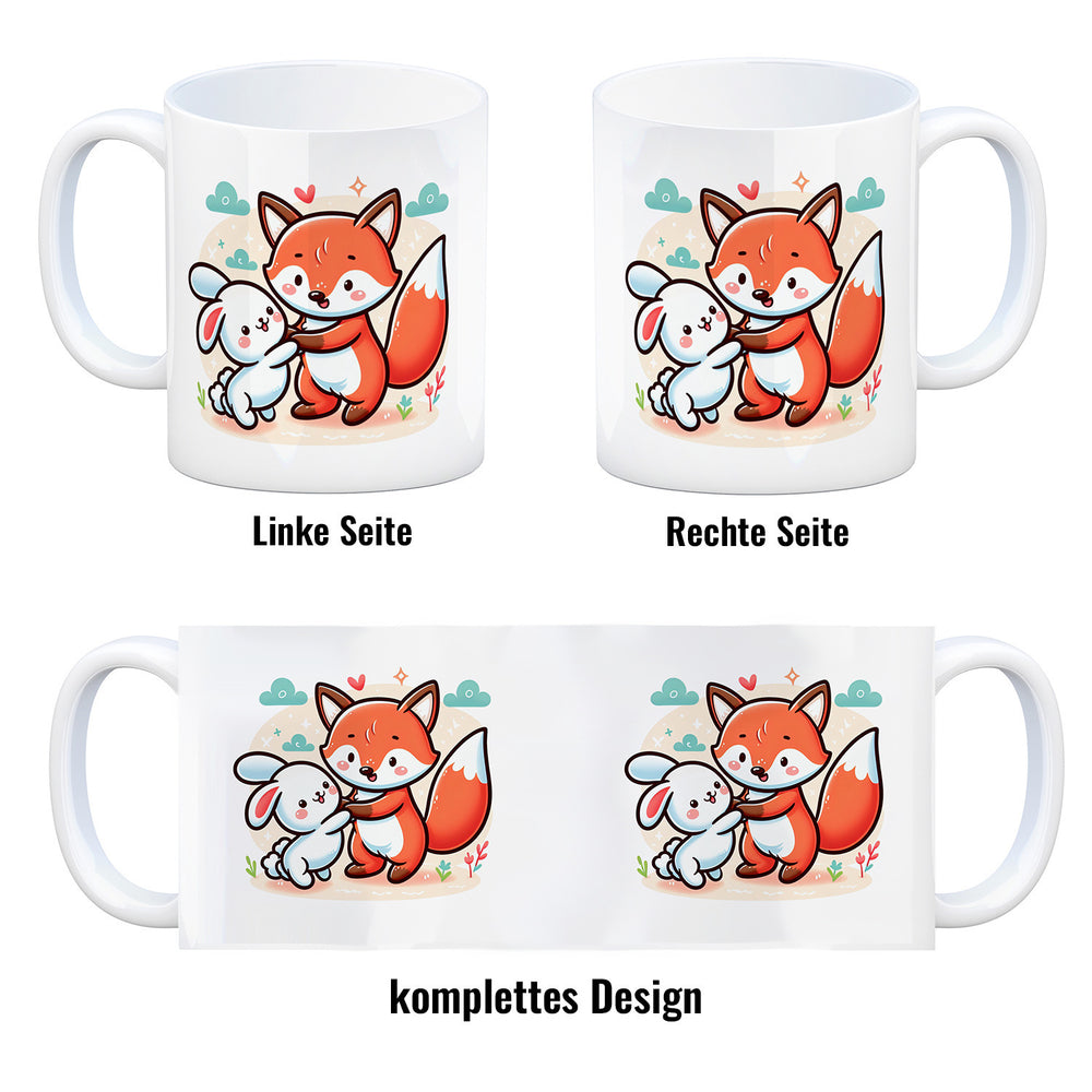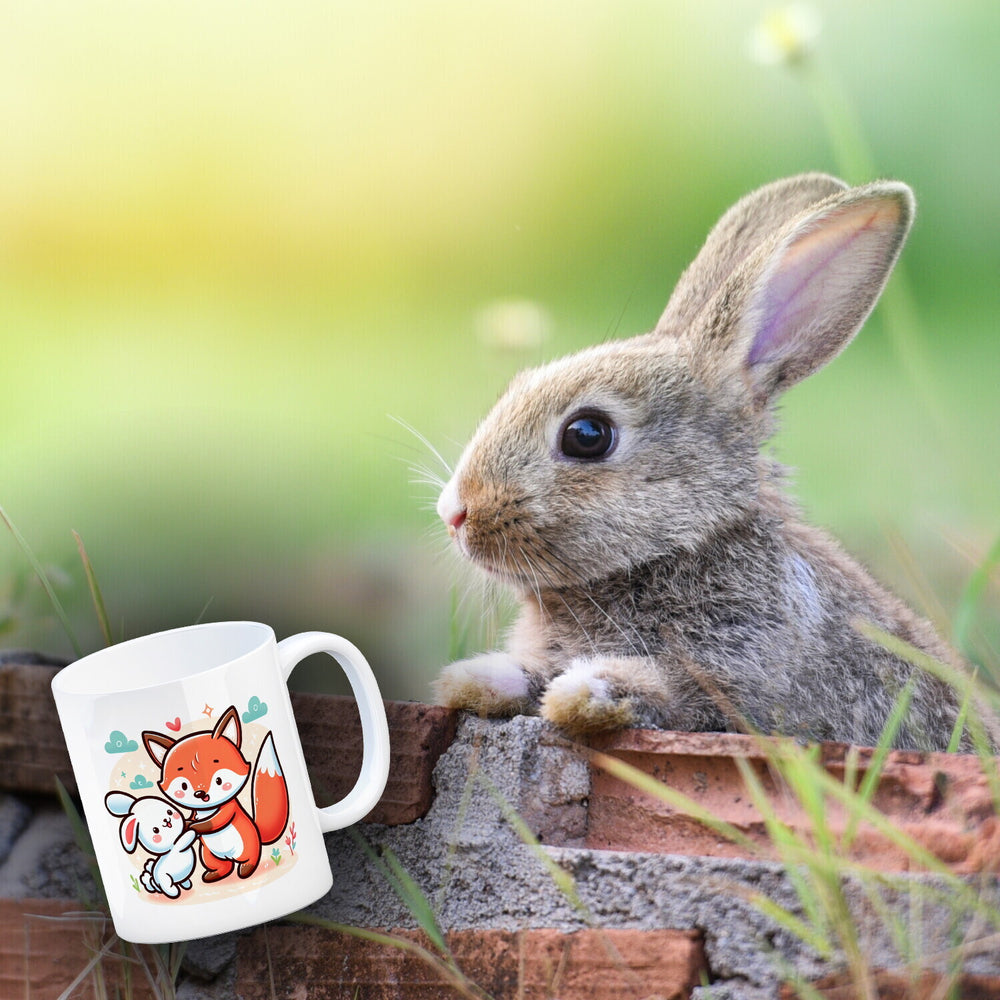 • 1x Fuchs und Kaninchen Kaffeebecher in der gewählten Ausführung