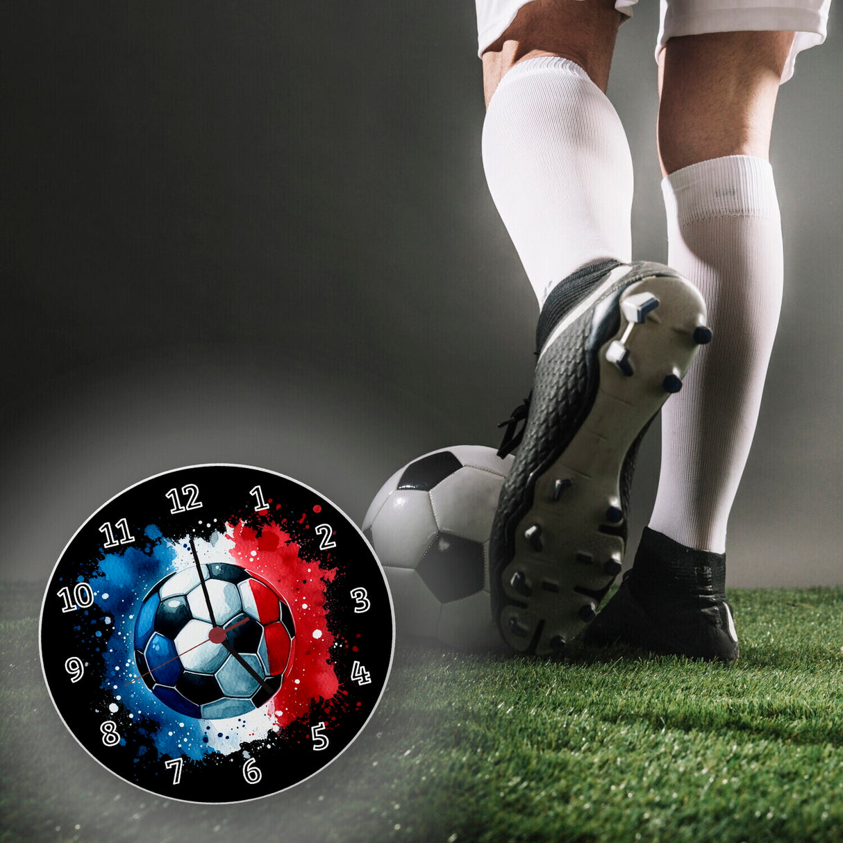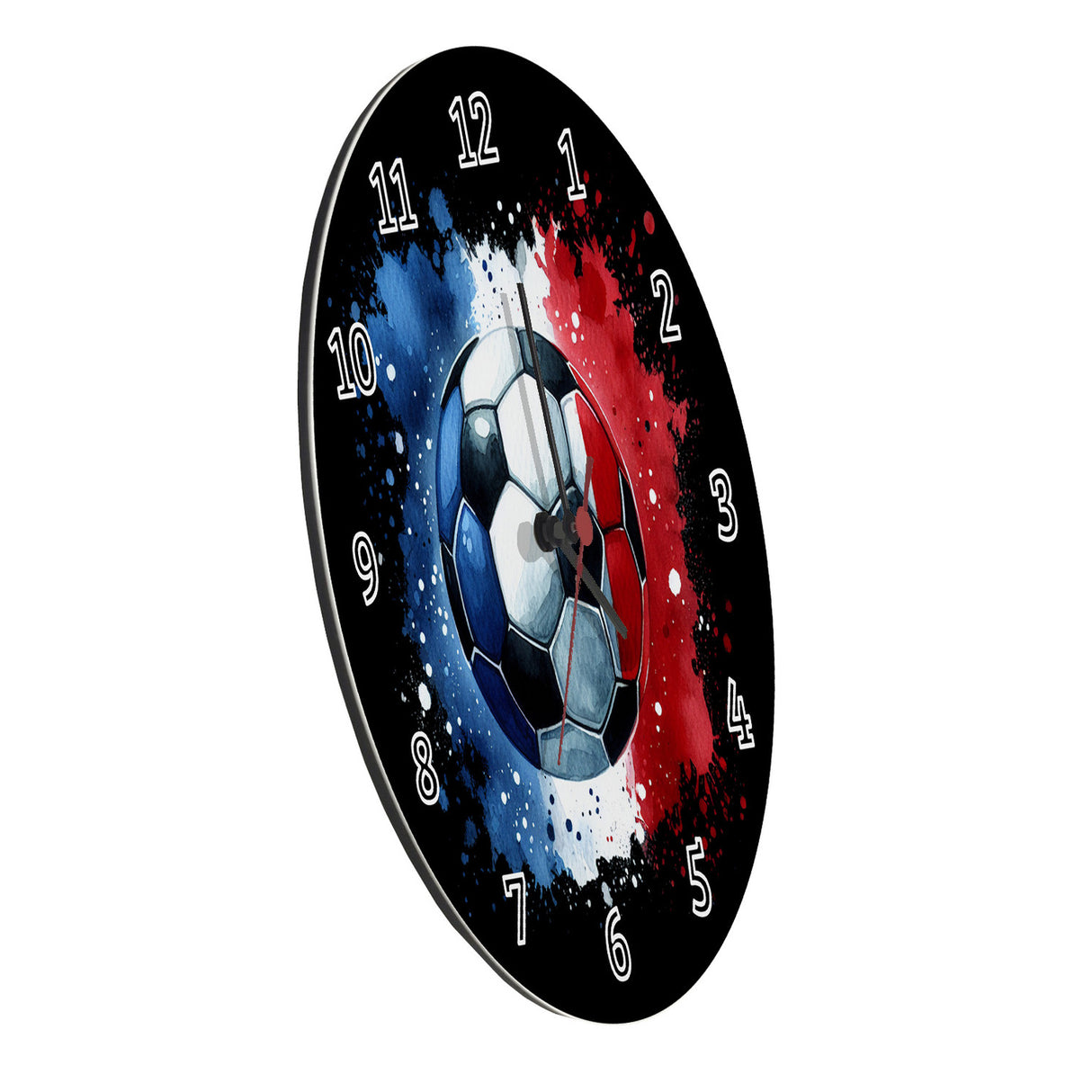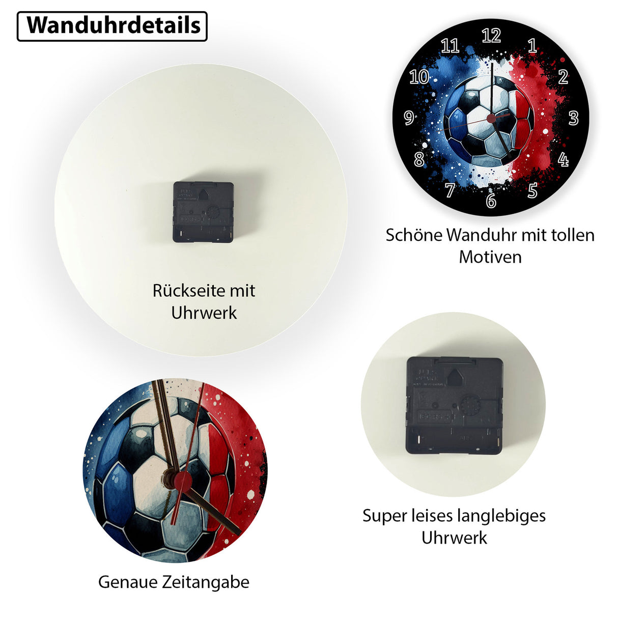 - Tick-tock, Fußball-Fans! Diese sportliche Wanduhr bringt die EM 2024 direkt in dein Wohnzimmer. Die Frankreich Flagge in Blau, Weiß und Rot hüllt einen Ball ein und lässt jedes Fan-Herz höherschlagen. Perfekt für alle, die den Fußball lieben und stolz auf Les Bleus sind!