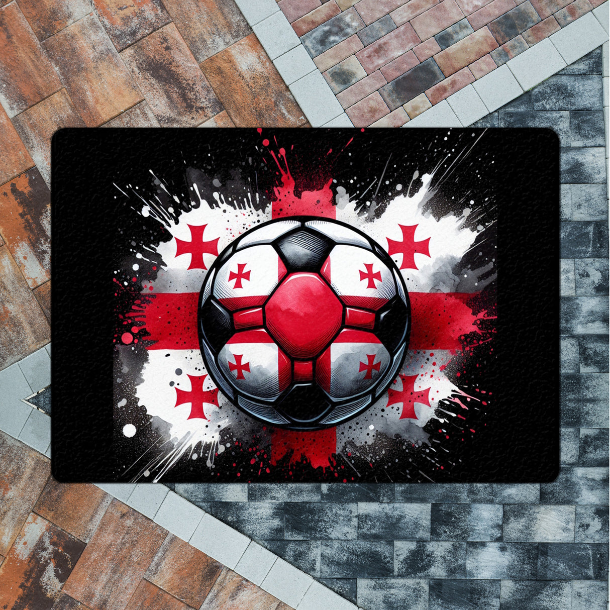 - Roll den roten Teppich aus für die wichtigsten Gäste: deine Schuhe! Unsere Fußball Georgien Flagge Fußmatte ist der perfekte Weg, den Fan in dir zu zeigen. Mit ikonischem rot-weißem Kreuzmuster und einem Fußball im georgischen Design lässt sie dein Herz höher schlagen.