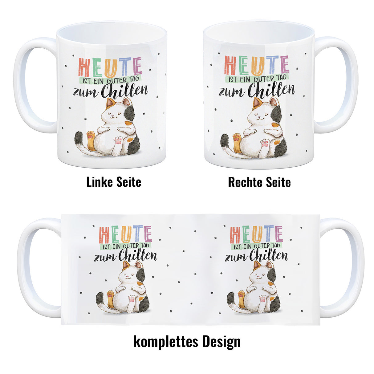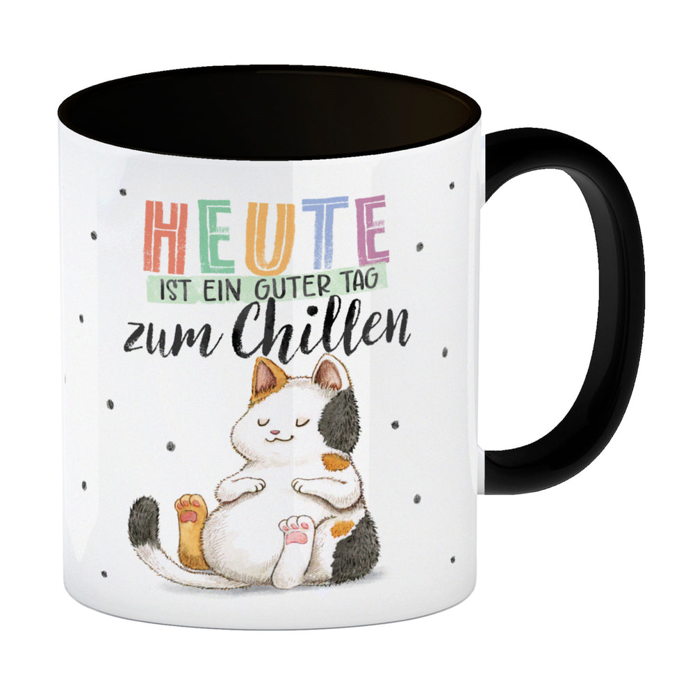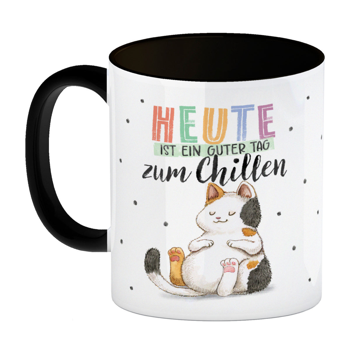 - 1x Glückskatze Kaffeebecher mit Spruch Heute ist ein guter Tag zum Chillen in der gewählten Ausführung