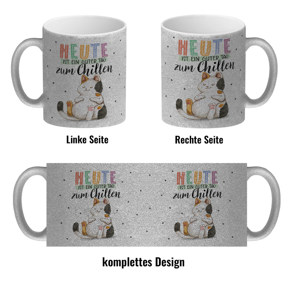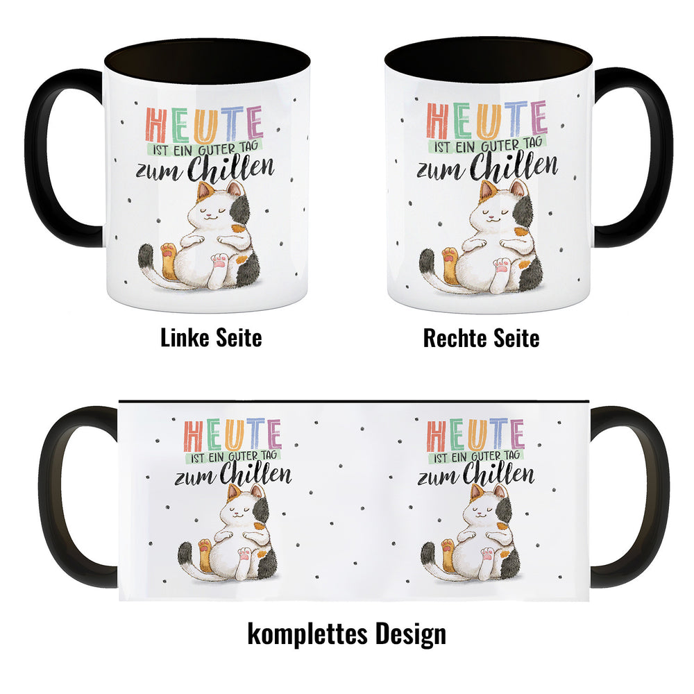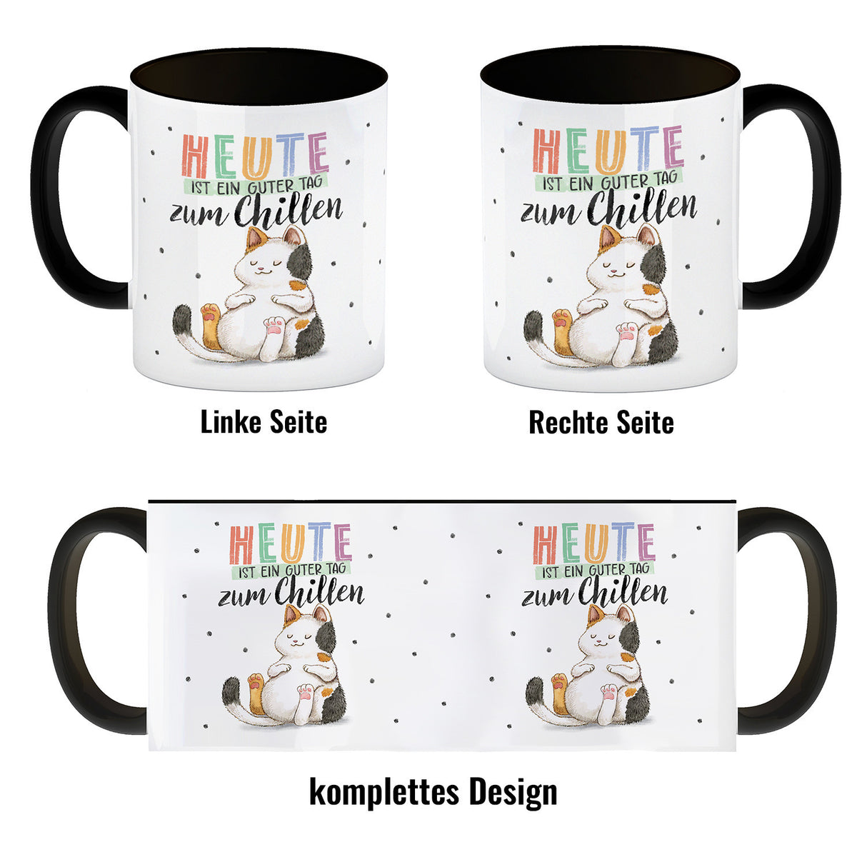 - 1x Glückskatze Kaffeebecher mit Spruch Heute ist ein guter Tag zum Chillen in der gewählten Ausführung