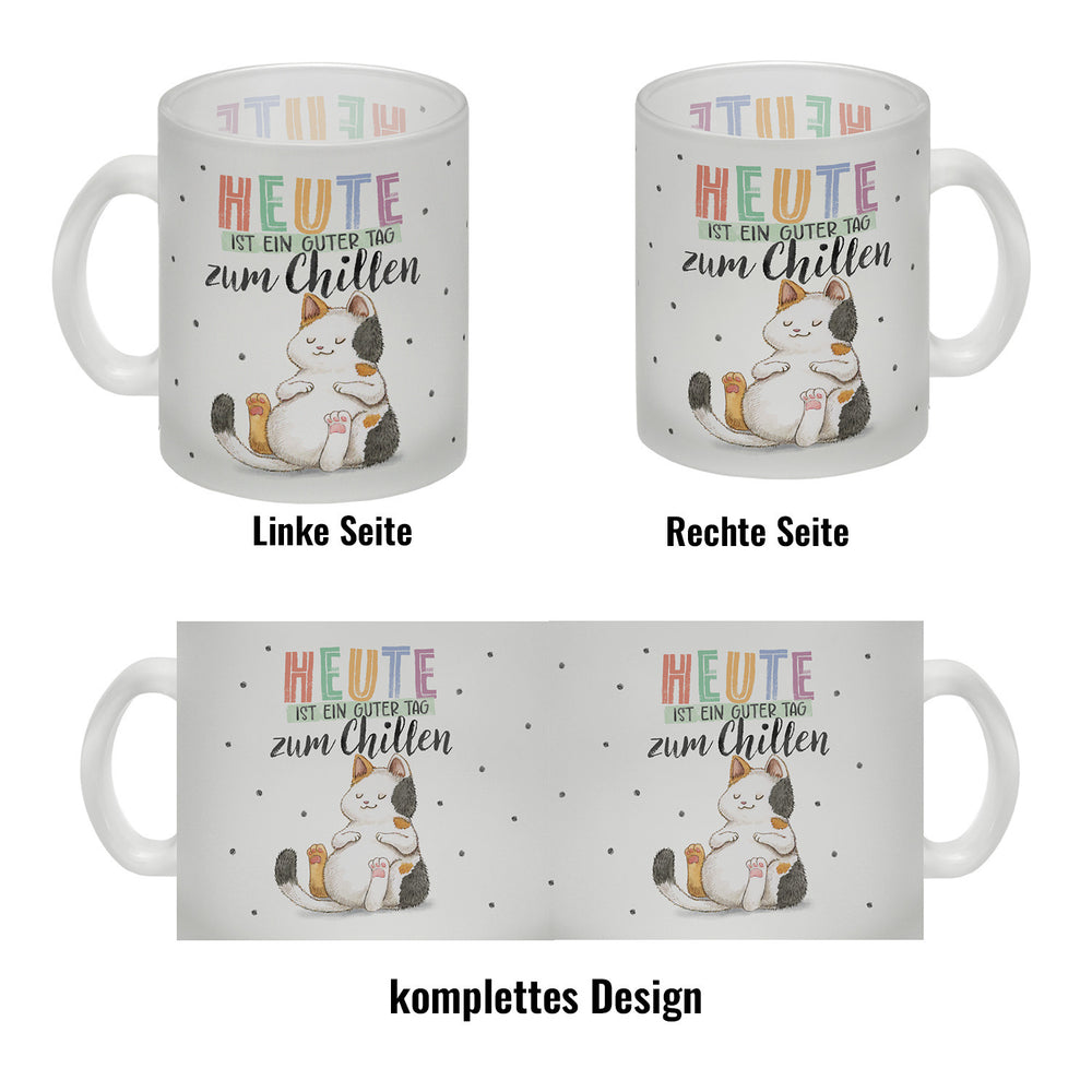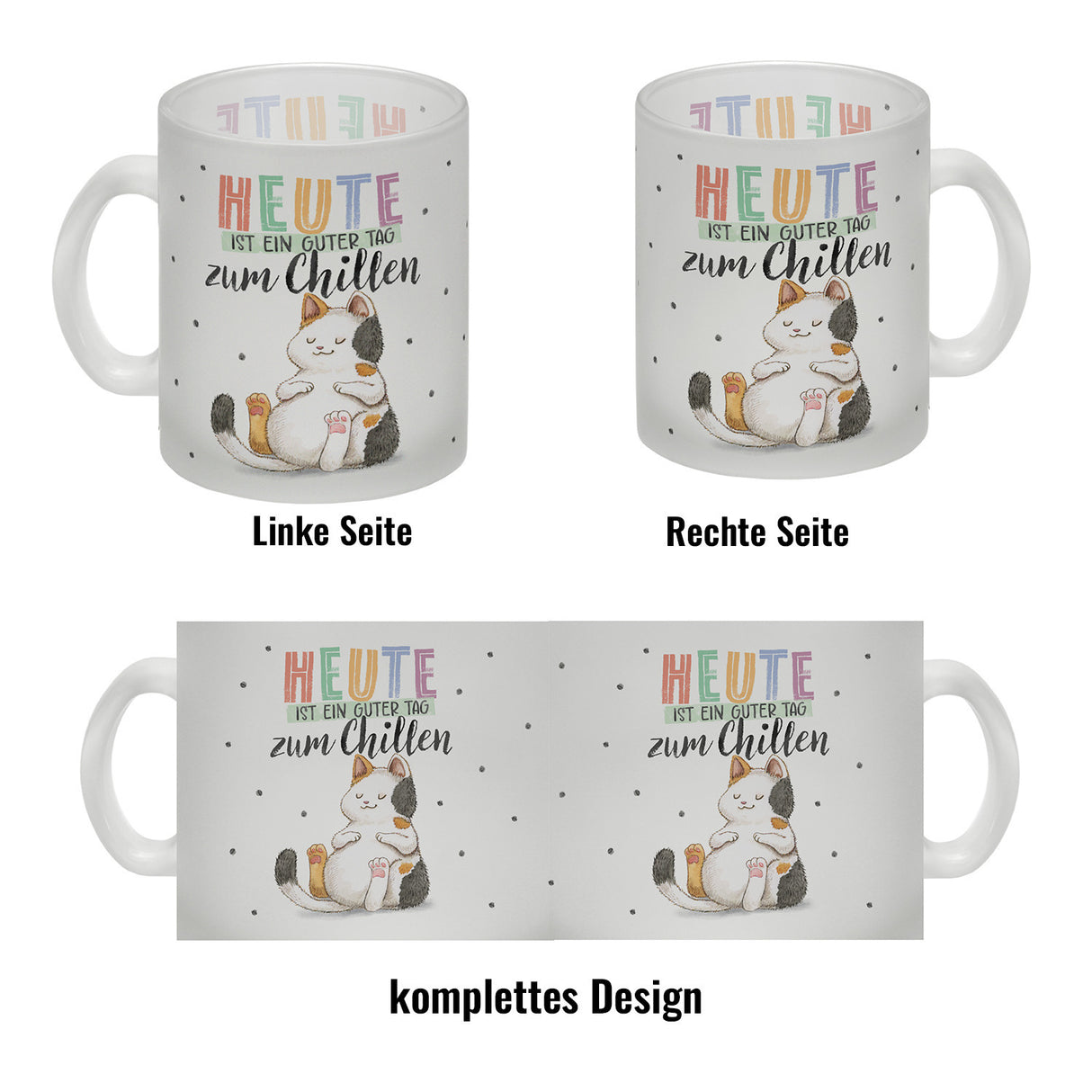 Glückskatze Kaffeebecher mit Spruch Heute ist ein guter Tag zum Chillen