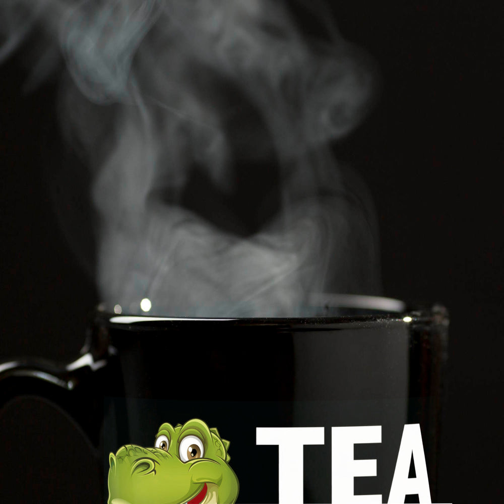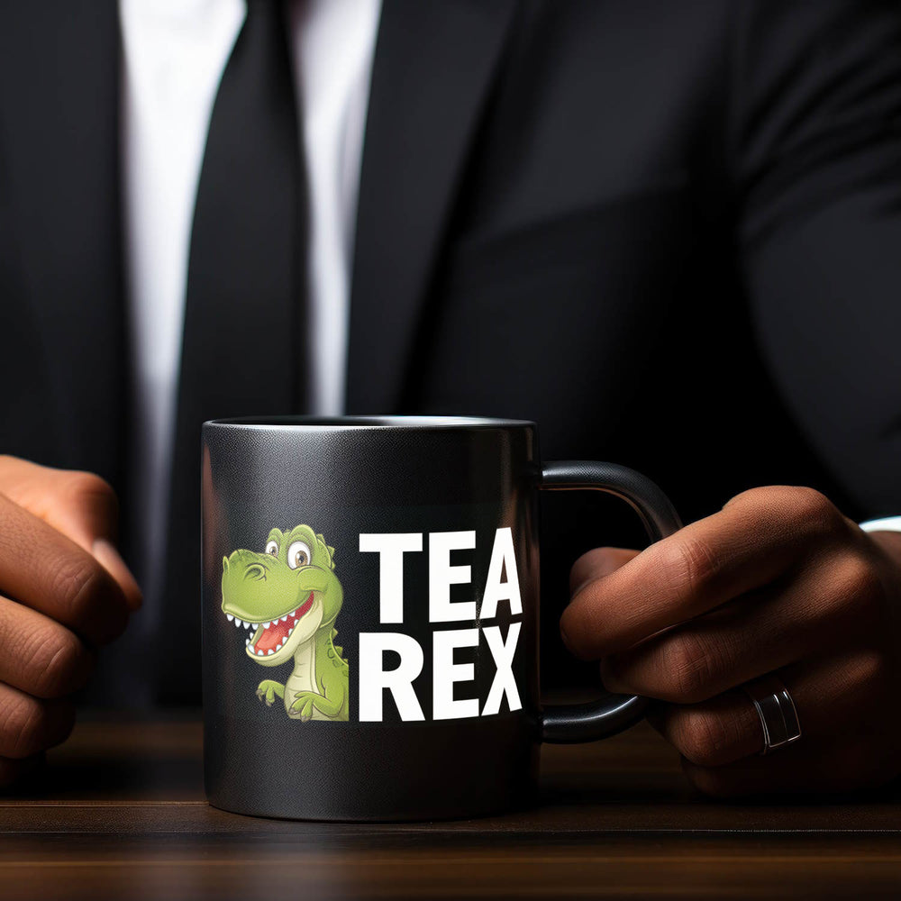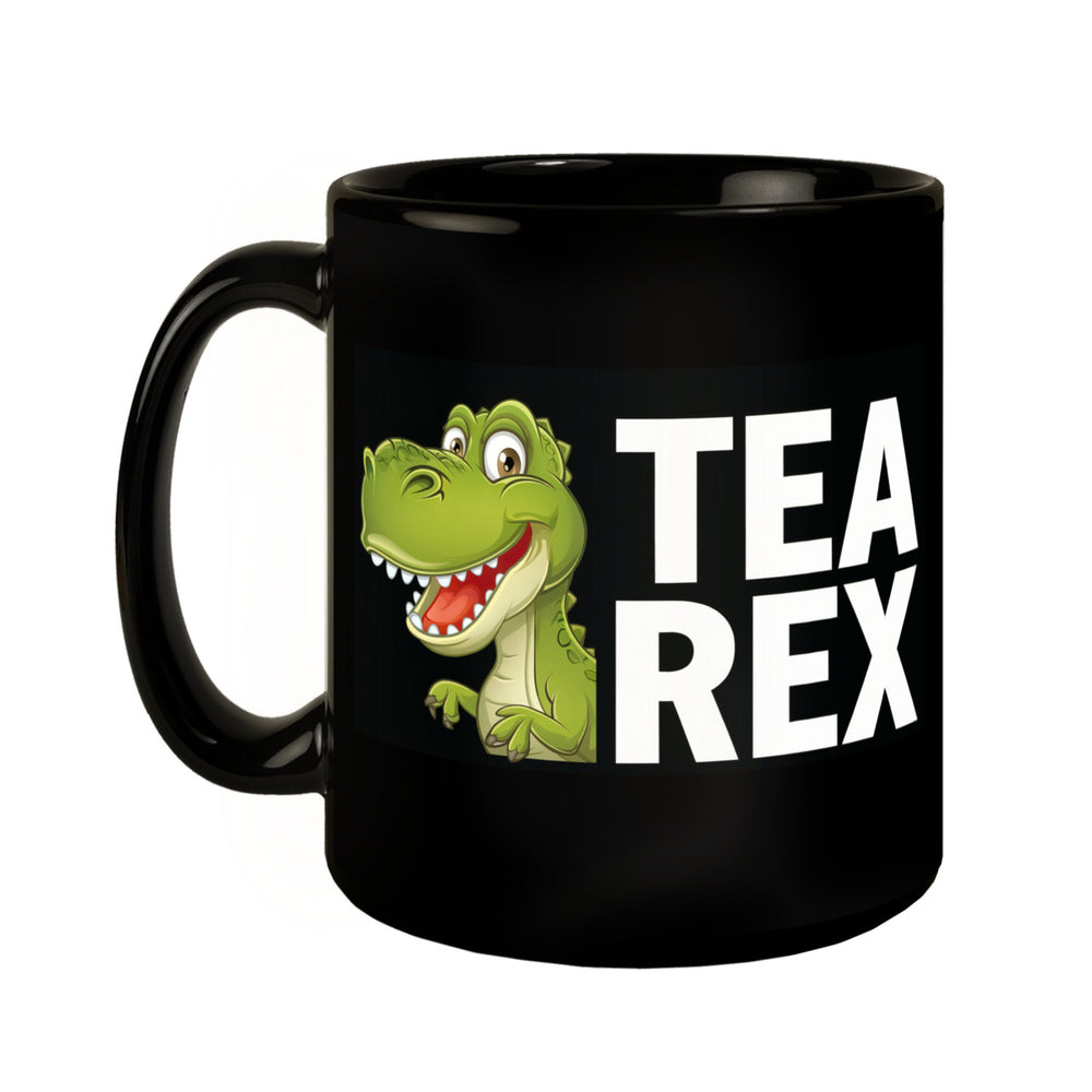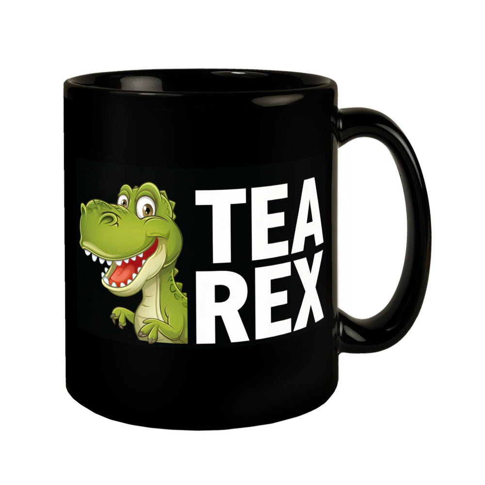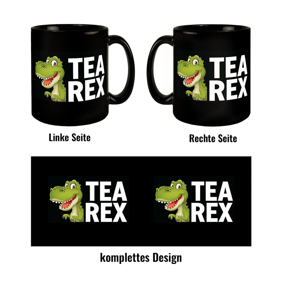 - Dieser schwarze Kaffeebecher verwandelt Dein Frühstück in den Jurassic Park! Mit einem grünen Cartoon-Dinosaurier und dem Schriftzug TEA REX zaubert diese Tasse garantiert ein Lächeln auf Dein Gesicht.