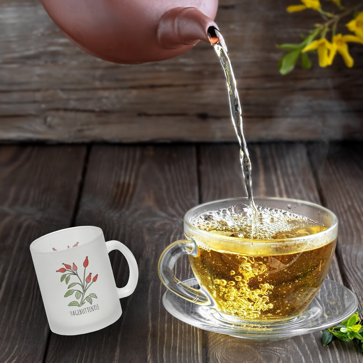 - 1x Hagebuttentee Teetasse mit Hagebuttenpflanze für Teetrinker in der gewählten Ausführung