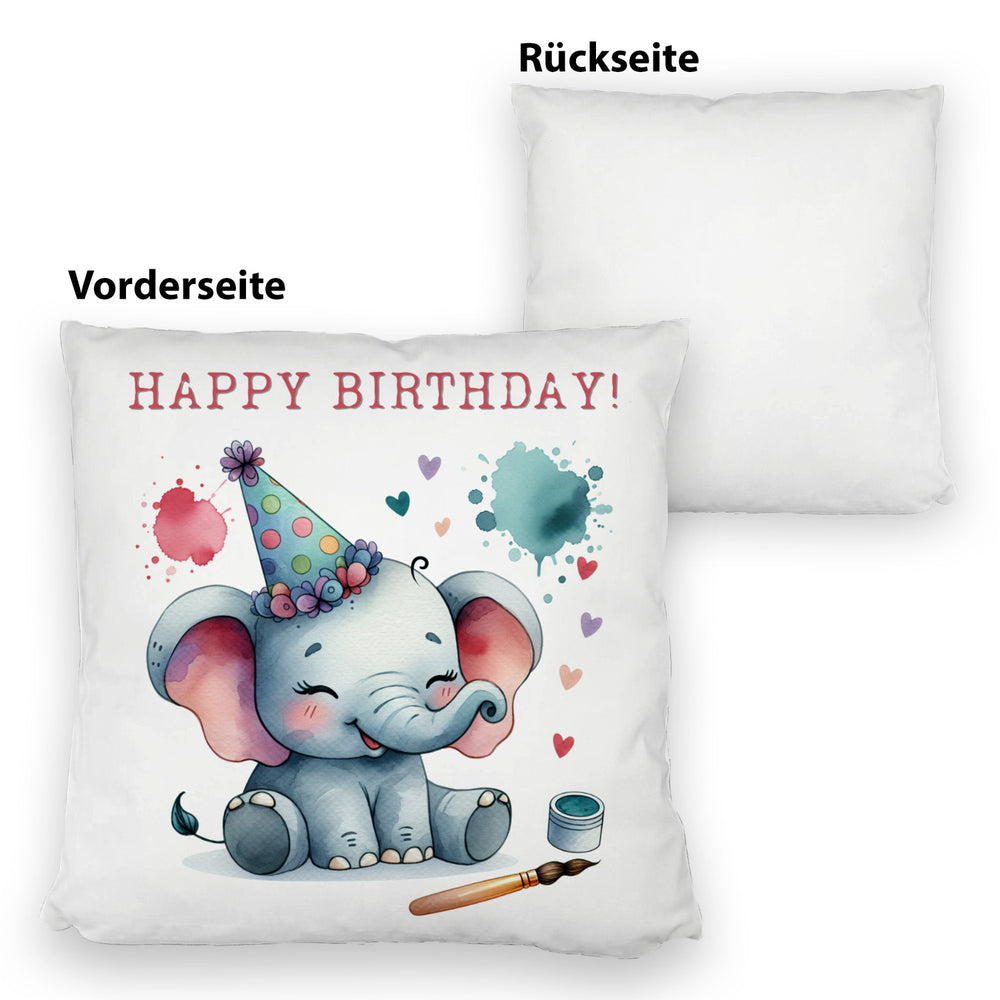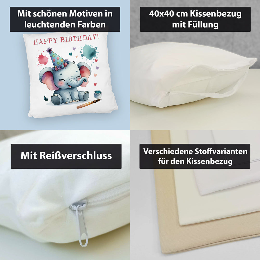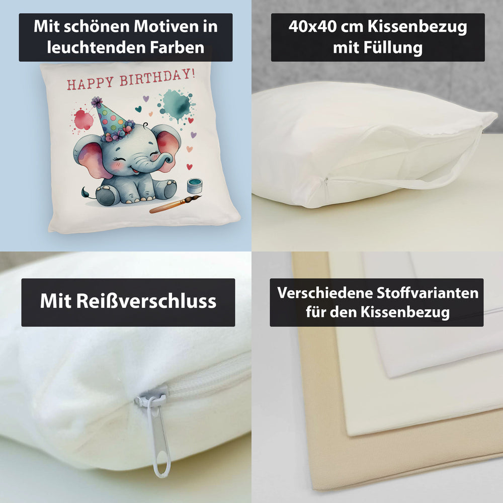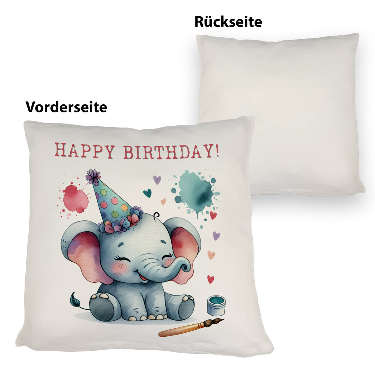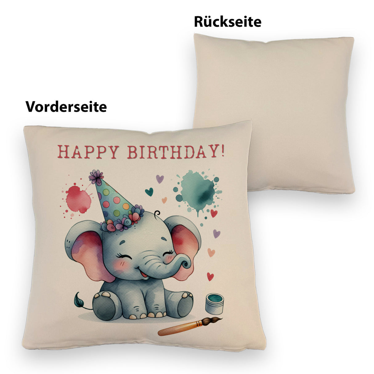 - 1x Happy Birthday Elefant Kissen in der gewählten Ausführung