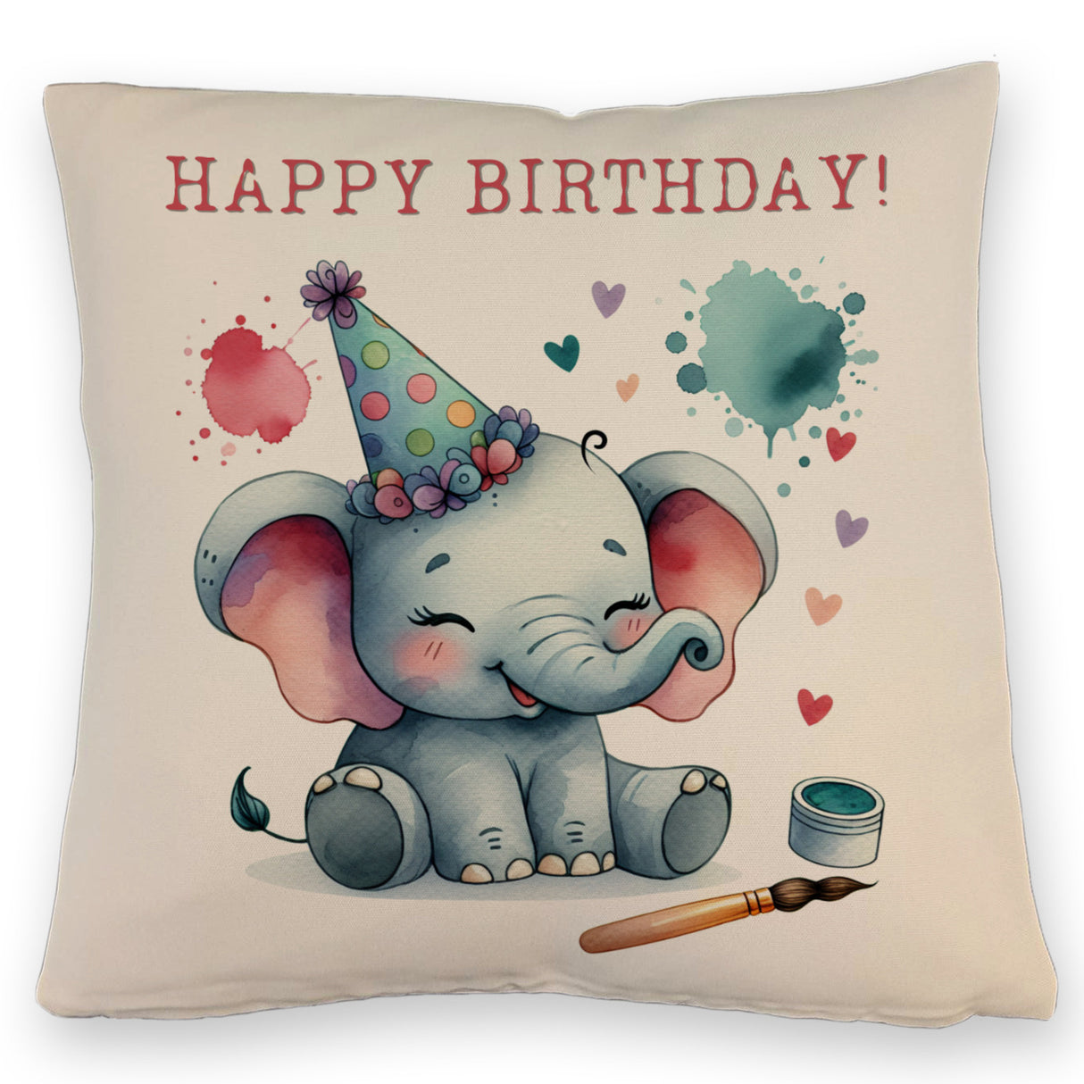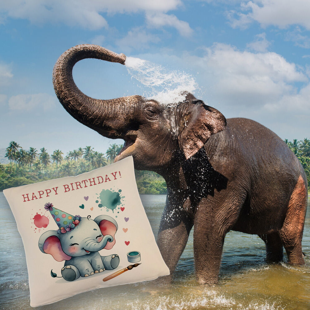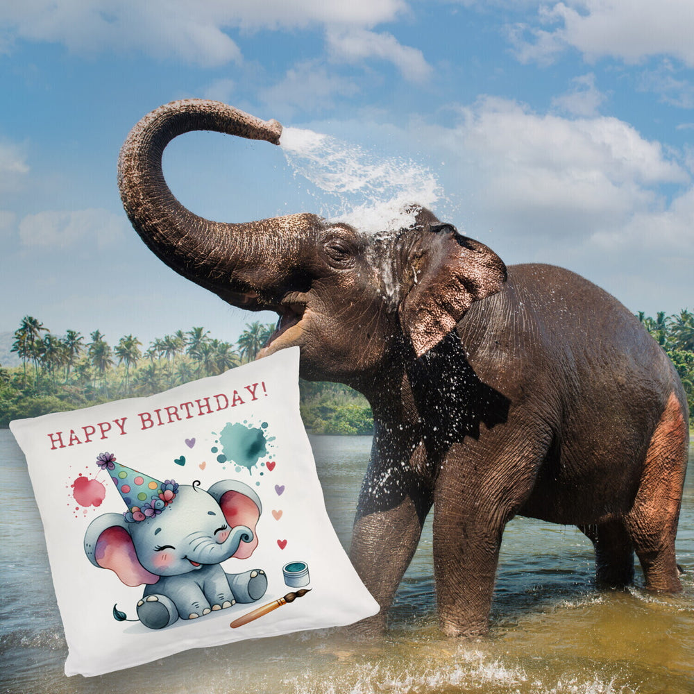 - Feiere mit dem kuscheligsten Begleiter in der Savanne! Das 'Happy Birthday Elefant Kissen' ist der Inbegriff von "Geburtstagssüße". Mit einem lächelnden Elefanten im Partyhütchen und umgeben von bunten Herzen ist es ein Herzbrecher für Groß und Klein!