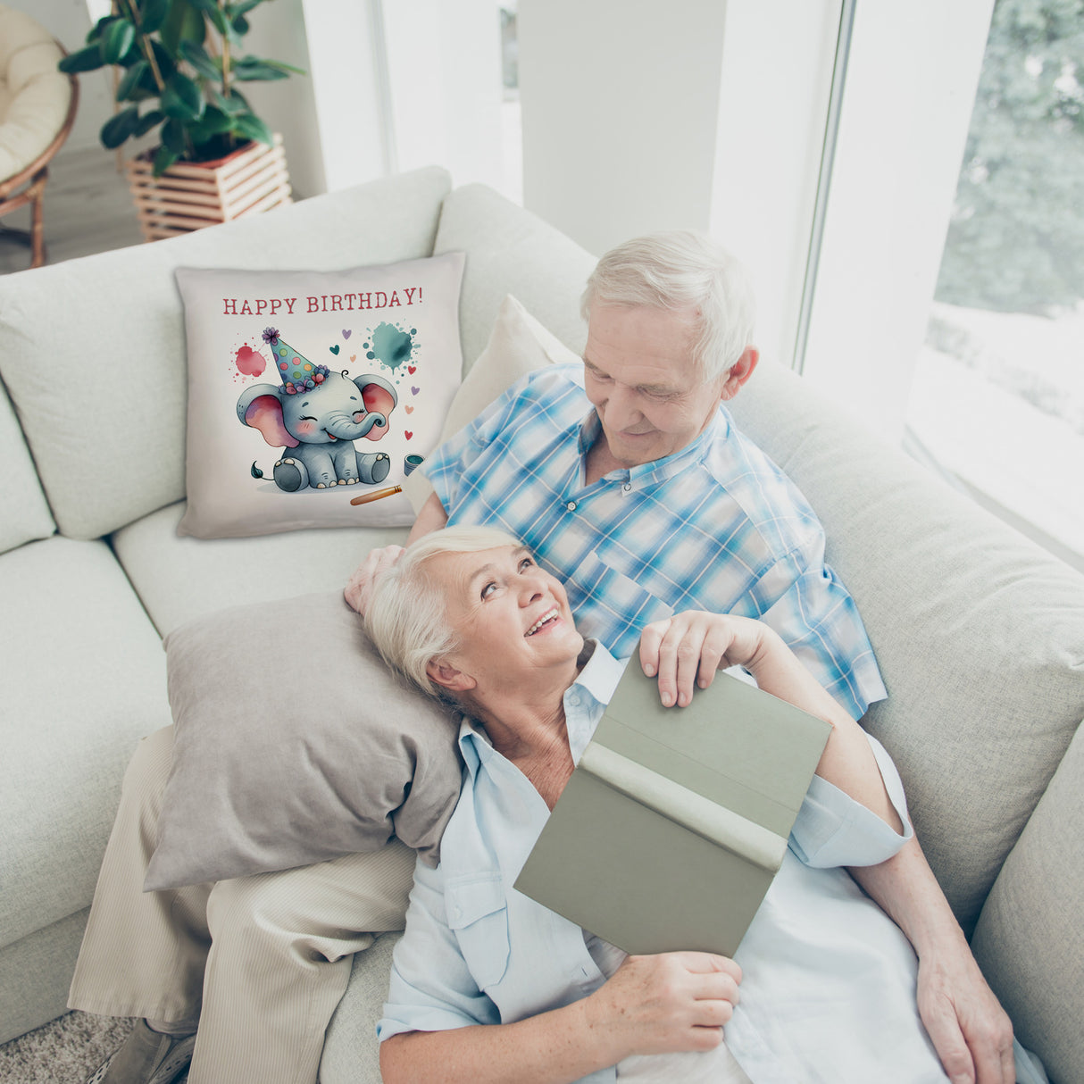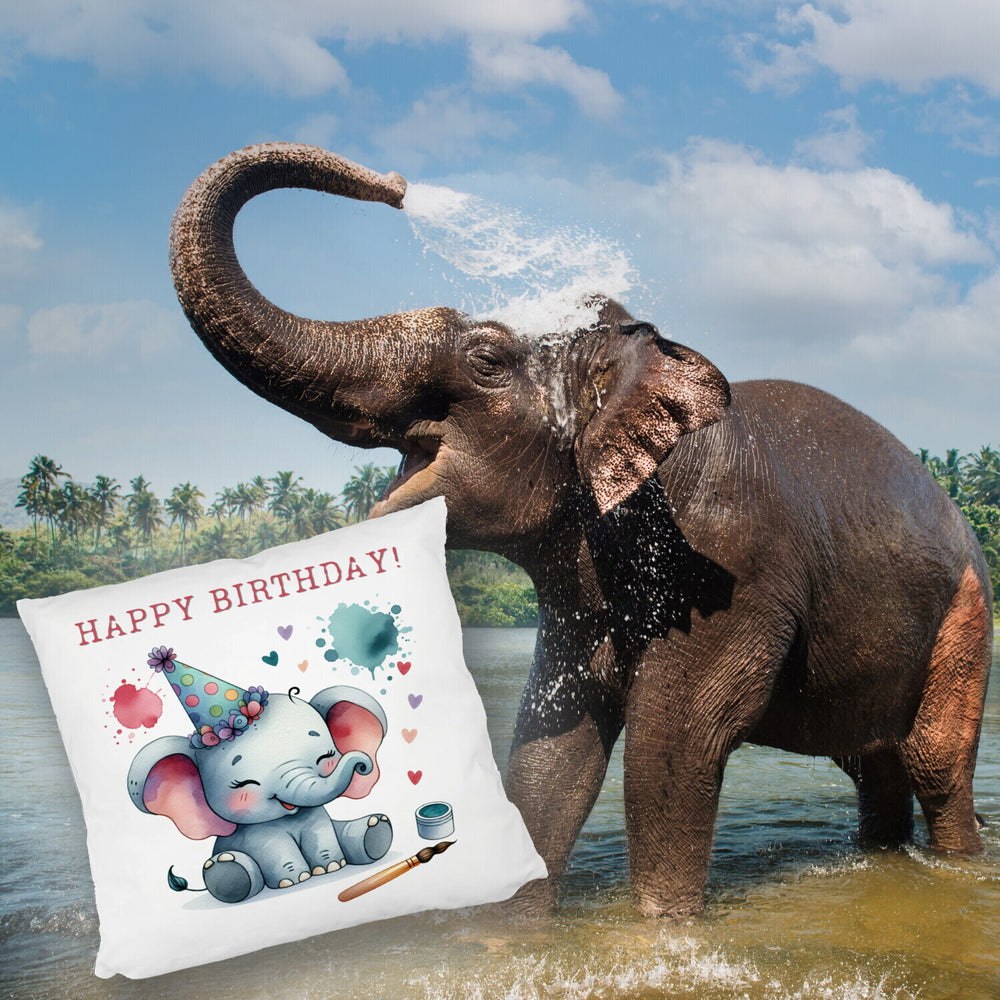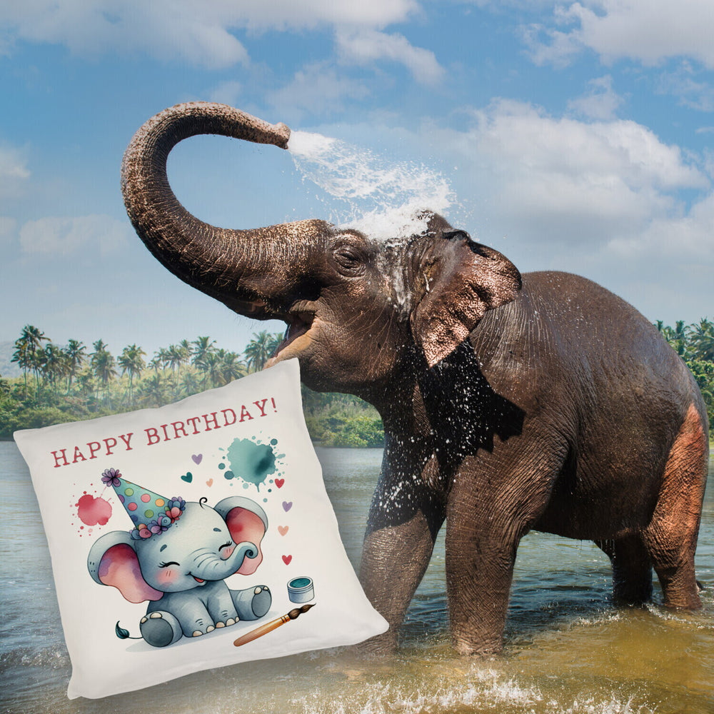 - Feiere mit dem kuscheligsten Begleiter in der Savanne! Das 'Happy Birthday Elefant Kissen' ist der Inbegriff von "Geburtstagssüße". Mit einem lächelnden Elefanten im Partyhütchen und umgeben von bunten Herzen ist es ein Herzbrecher für Groß und Klein!