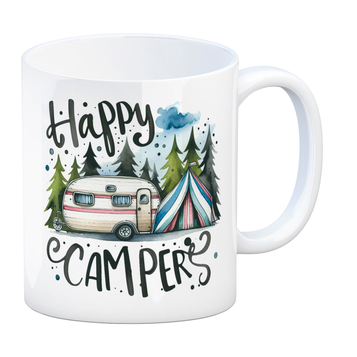 Campingwagen Kaffeebecher mit Spruch Happy Campers