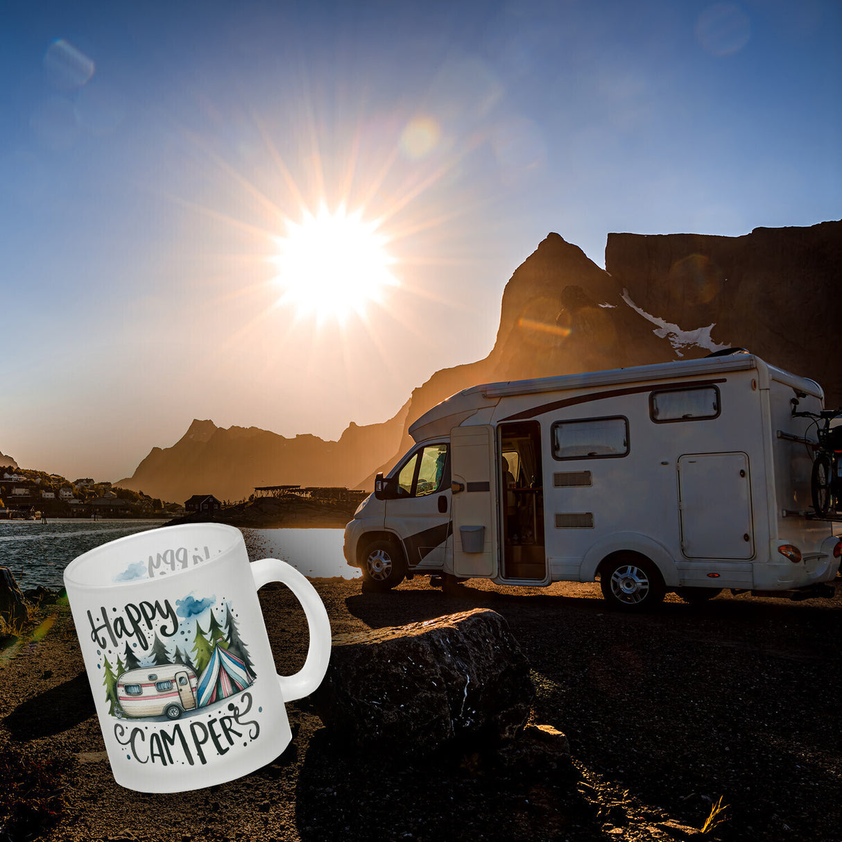 • 1x Happy Campers Wohnwagen Kaffeebecher in der gewählten Ausführung