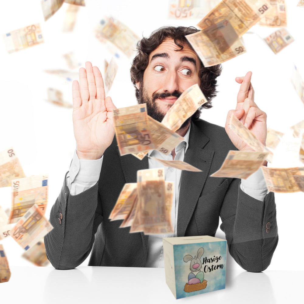 • 1x Hasige Ostern Spardose mit niedlichem Osterhasen in der gewählten Ausführung