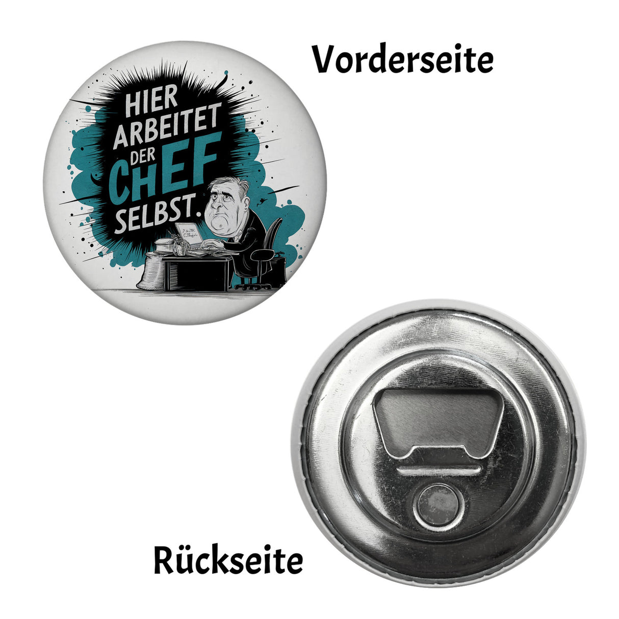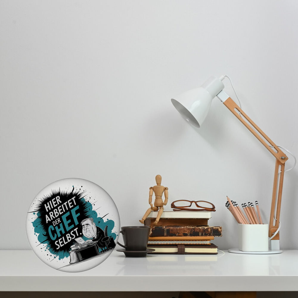 - Suchen Sie ein lustiges Geschenk für den Boss? Unser "Hier arbeitet der Chef selbst"-Magnet bringt Schwung in jedes Büro! Das runde Design zeigt eine türkisblaue Schrift auf weißem Hintergrund.