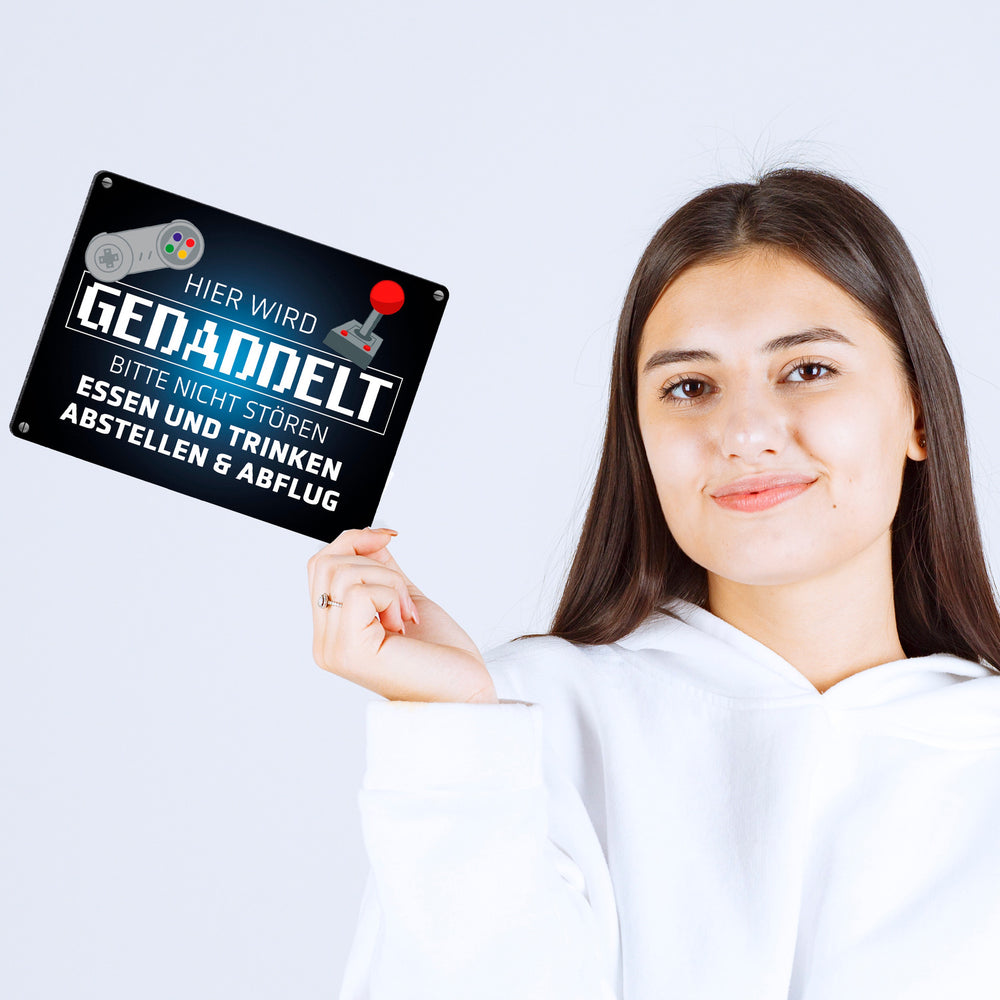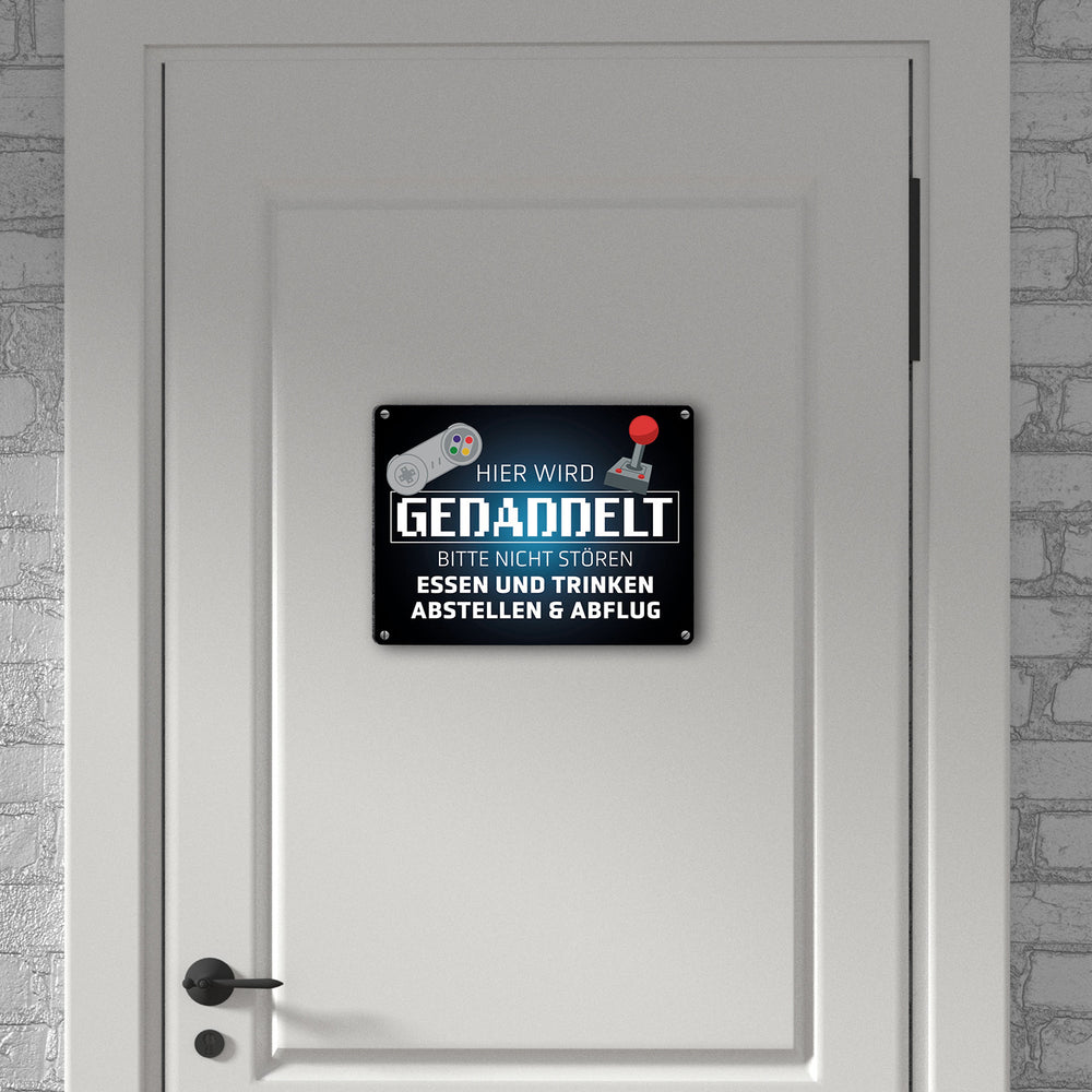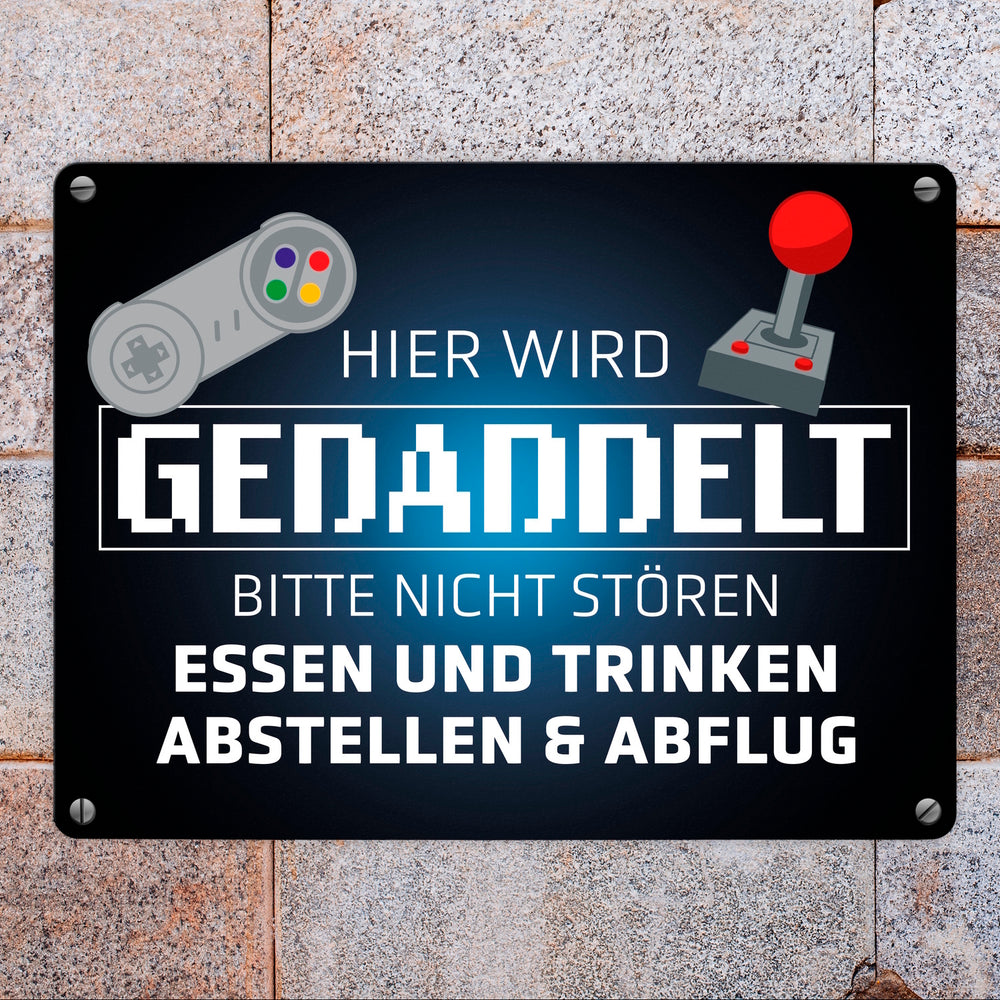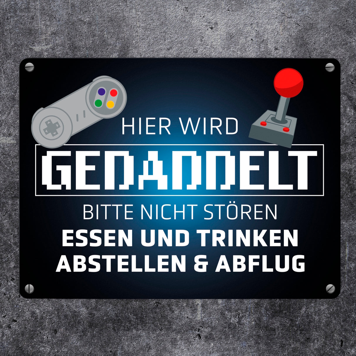 - Das perfekte Metallschild für alle Zocker und Gamer, die gerne mal eine Runde daddeln. Das Schild passt perfekt an die Zimmertüre, damit jeder weiß, dass du gerade deine Ruhe willst.