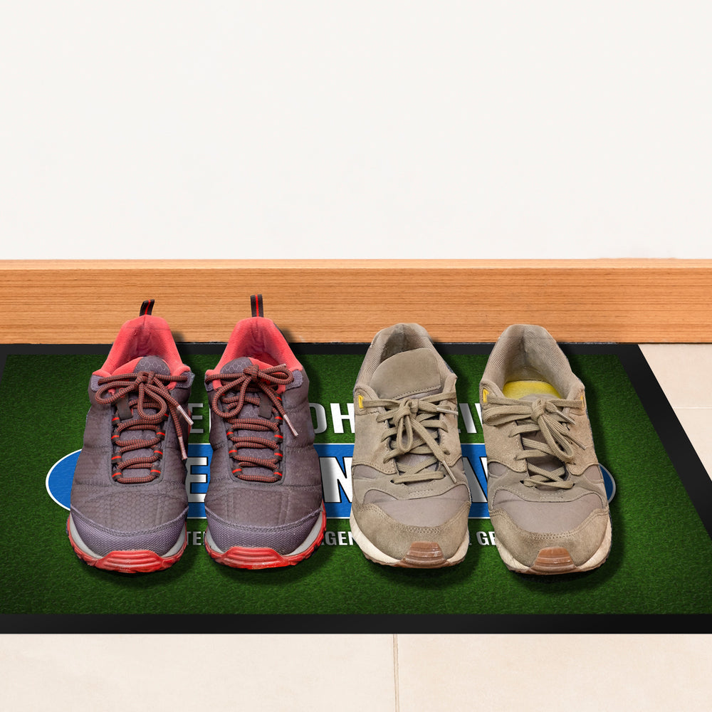 Dank dieser Fußmatte wissen deine Gäste, dass es an Spieltagen bei dir rund her geht. Hinweise: Material: Kunstfaser / mit rutschfester Gummiunterseite
