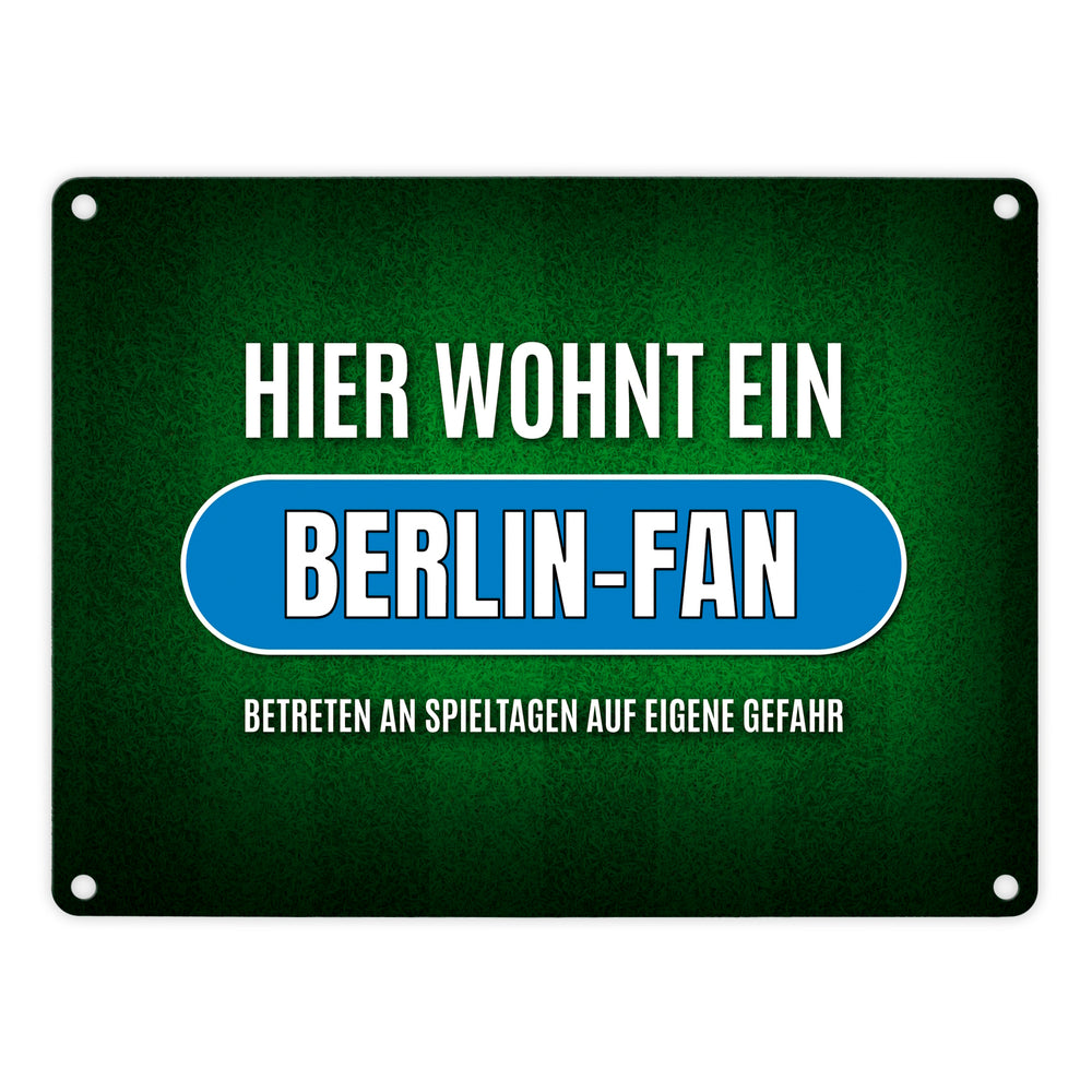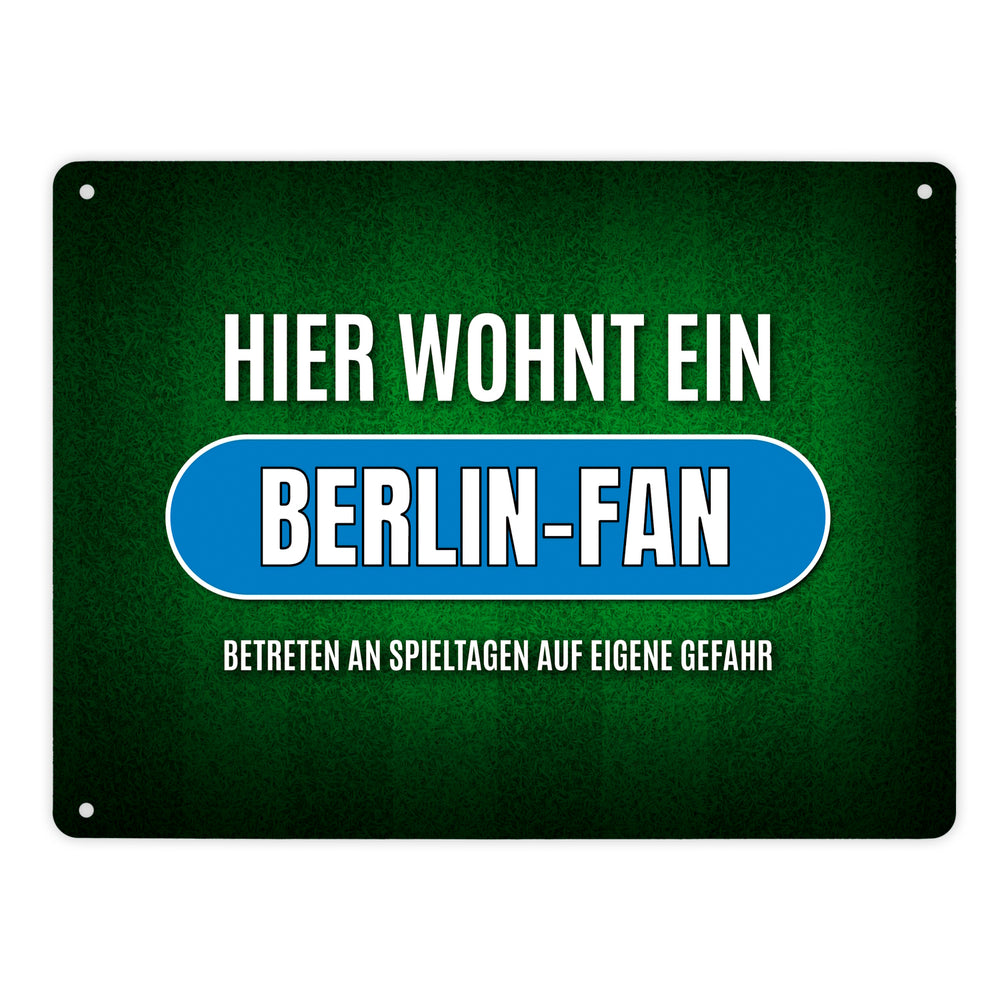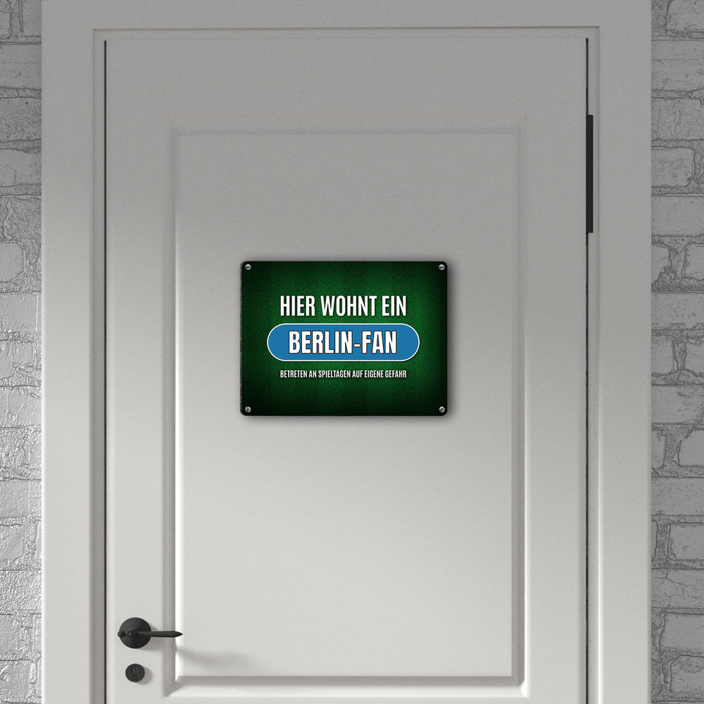 - 1x Hier wohnt ein Berlin-Fan -weiß Metallschild mit Rasen Motiv in der gewählten Größe