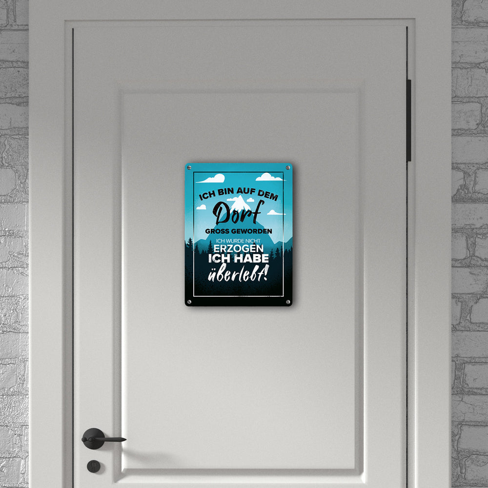 Ich bin auf dem Dorf groß geworden Metallschild mit schönem Panorama