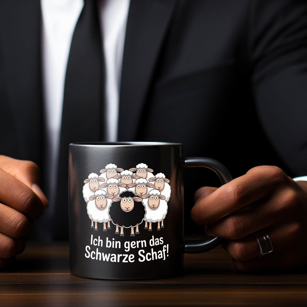 - Greifen Sie zu dieser hochwertigen, mit Liebe designten und bedruckten Tasse, die nicht nur für Lacher sorgt, sondern auch für eine Extraportion Persönlichkeit auf Ihrem Schreibtisch! Sei das schwarze Schaf und genieße deine Individualität in jedem Schluck. Perfektes Geschenk für Freunde mit Sinn für Humor!