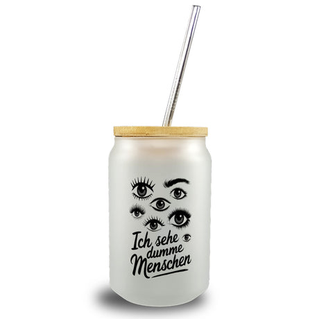 Ich sehe dumme Menschen Trinkglas mit Bambusdeckel Augen Design