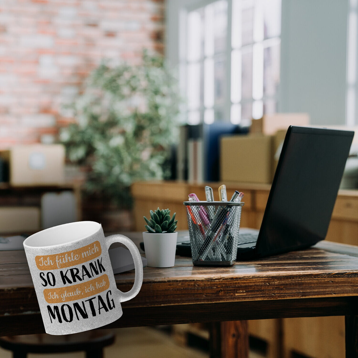 - 1x Ich fühle mich so krank ich glaub, ich hab Montag Kaffeebecher in der gewählten Ausführung