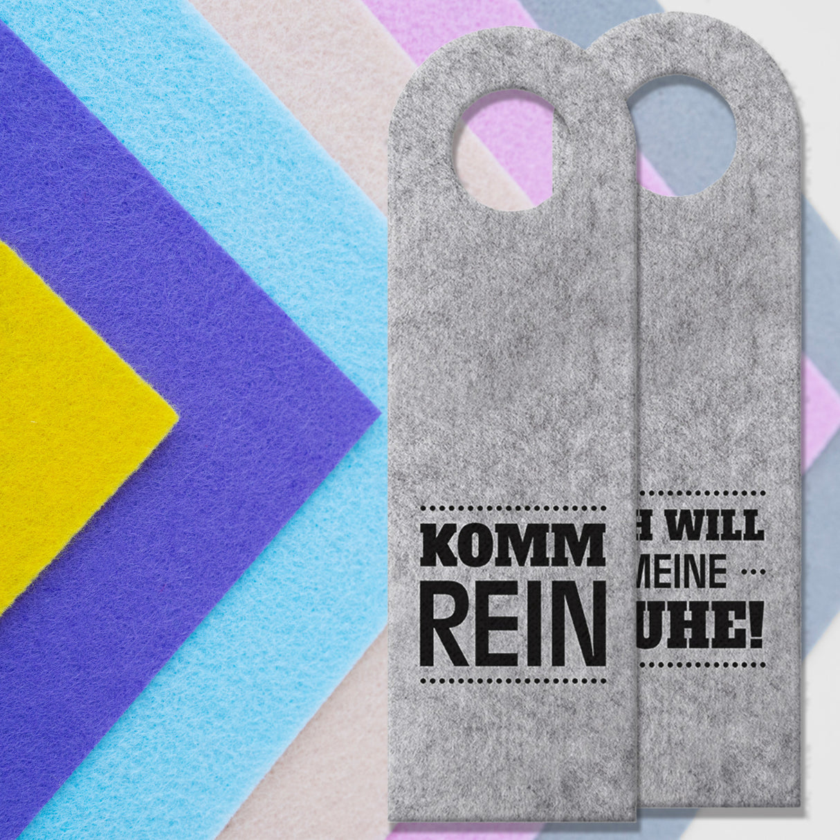 • Einzeln erhältlich oder als 3er- und 10er-Sparset. Aus hochwertigem Filz mit praktischem Loch für die Türklinke. Mit Sorgfalt in Handarbeit hergestellt in unserer Türhänger-Manufaktur in Deutschland.