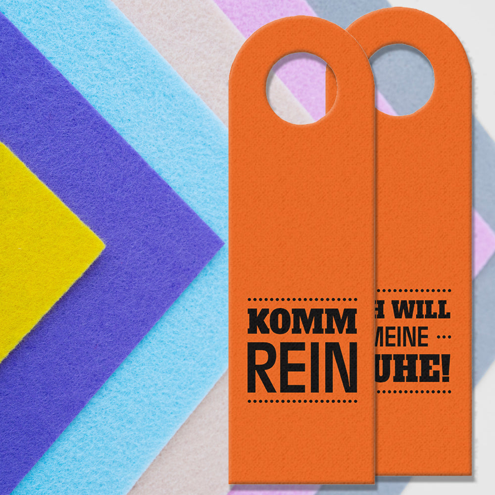- Einzeln erhältlich oder als 3er- und 10er-Sparset. Aus hochwertigem Filz mit praktischem Loch für die Türklinke. Mit Sorgfalt in Handarbeit hergestellt in unserer Türhänger-Manufaktur in Deutschland.