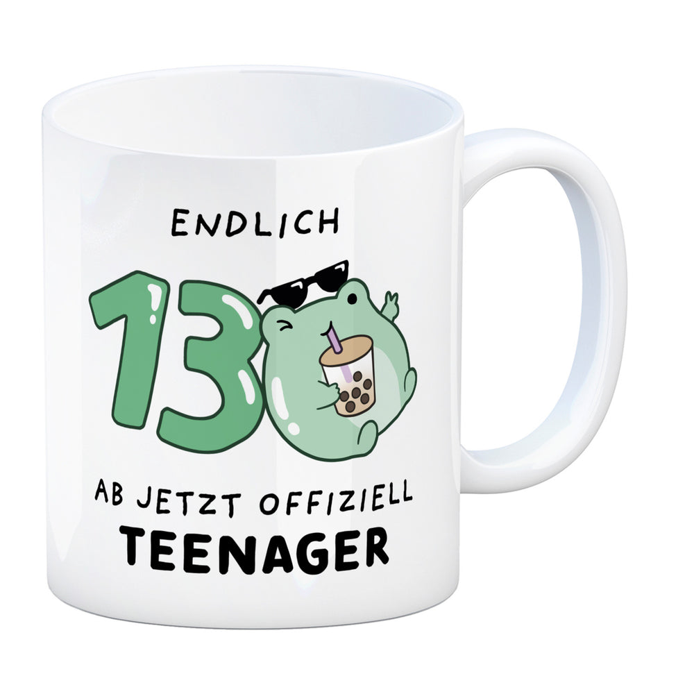 - 1x Jelly & Friends Frosch Kaffeebecher mit Spruch Endlich 13 Ab jetzt offiziell Teenager in der gewählten Ausführung