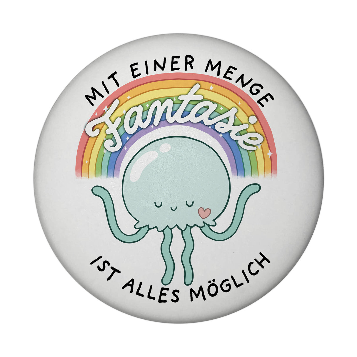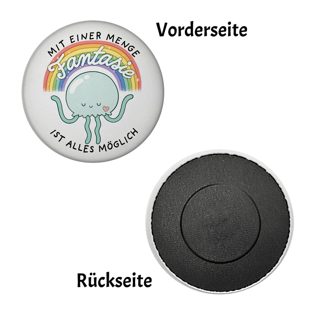 - 1x Jelly & Friends Qualle Magnet rund mit Spruch Fantasie macht alles möglich in der gewählten Ausführung