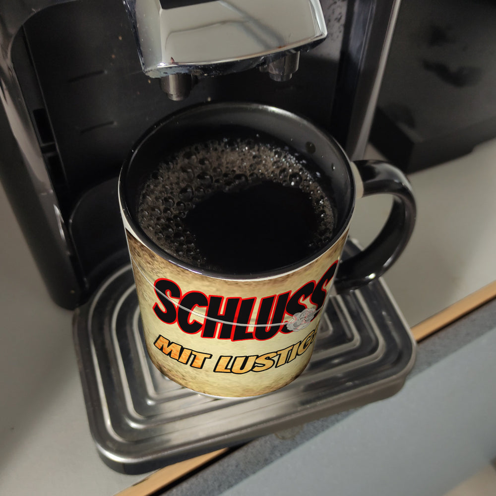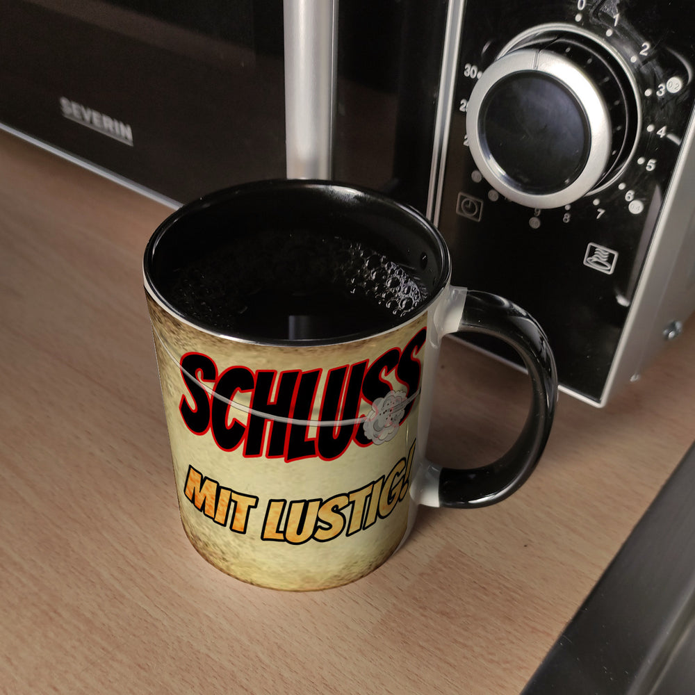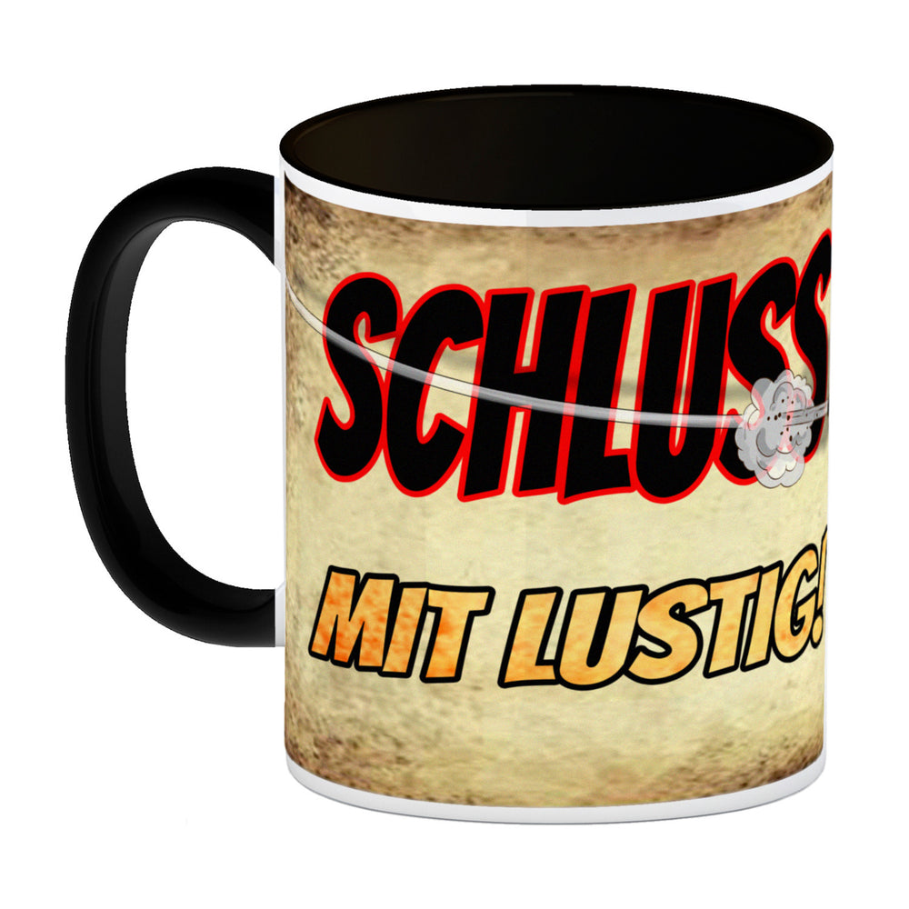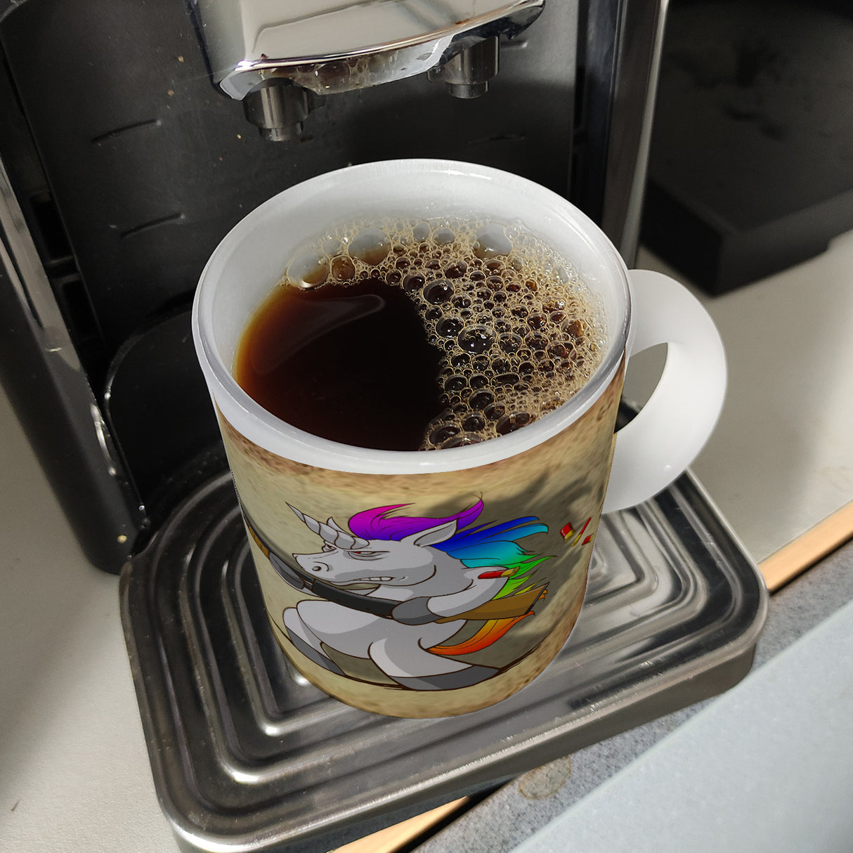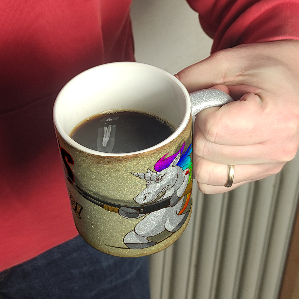 - 1x Kaffeebecher mit lustigem Einhorn mit Gewehr Motiv - SCHLUSS MIT LUSTIG! in der gewählten Ausführung