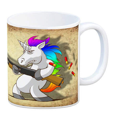 Kaffeebecher mit lustigem Einhorn mit Gewehr Motiv - SCHLUSS MIT LUSTIG!
