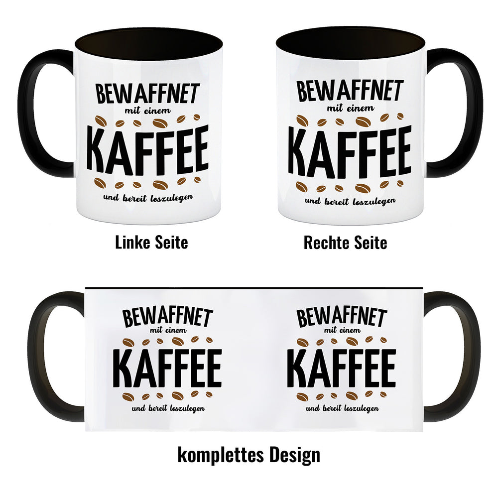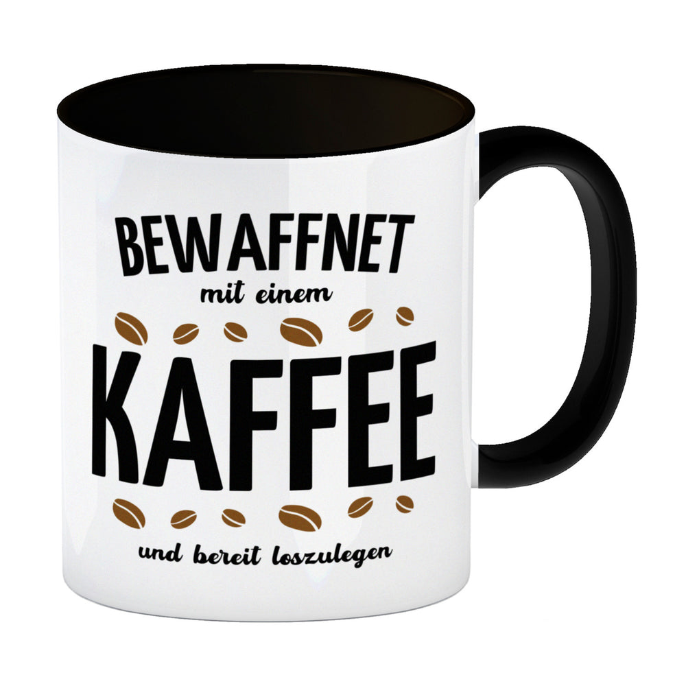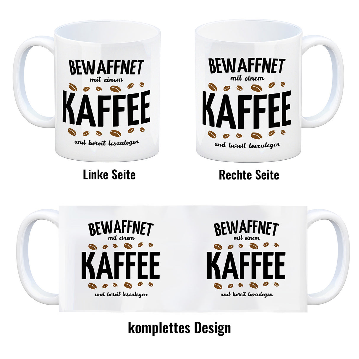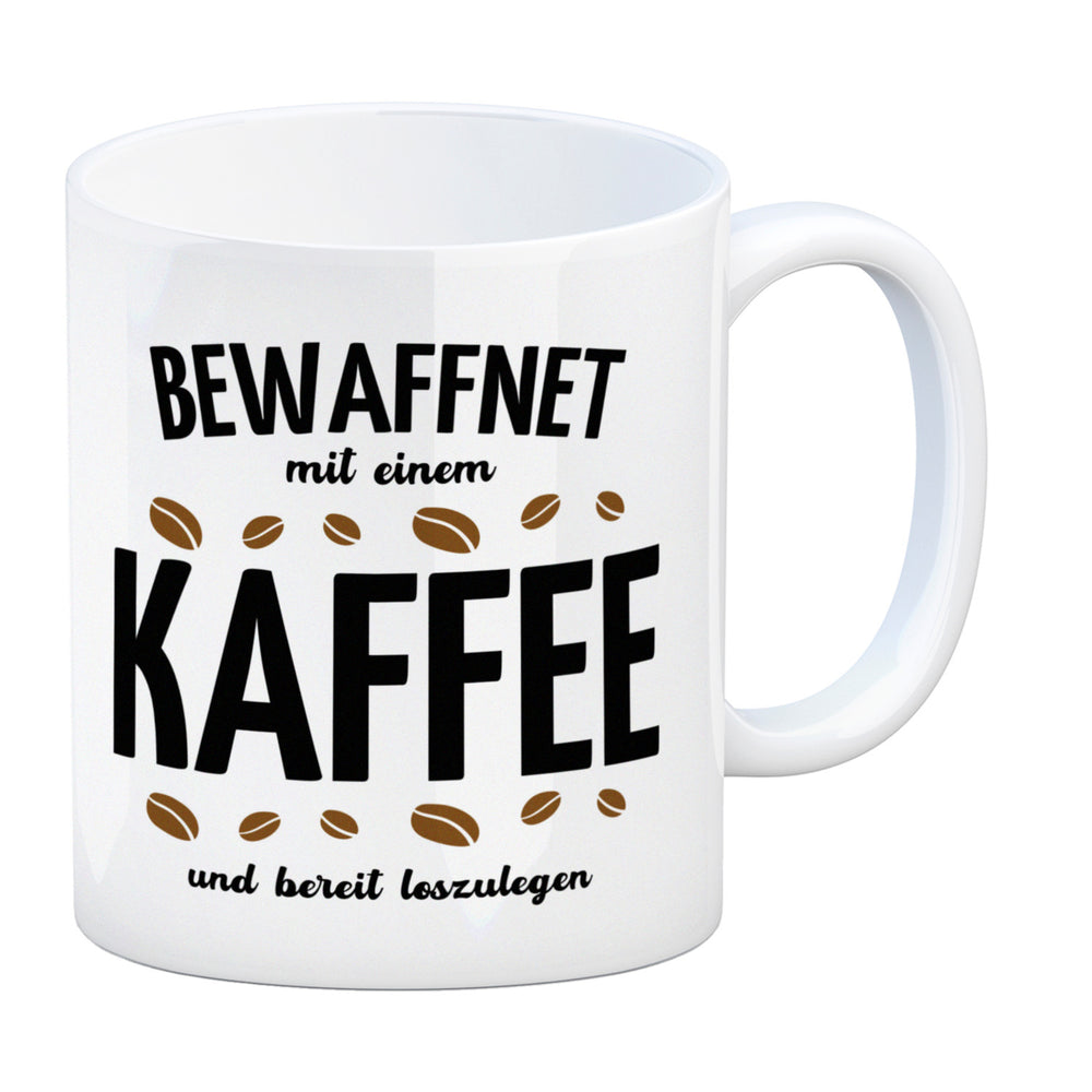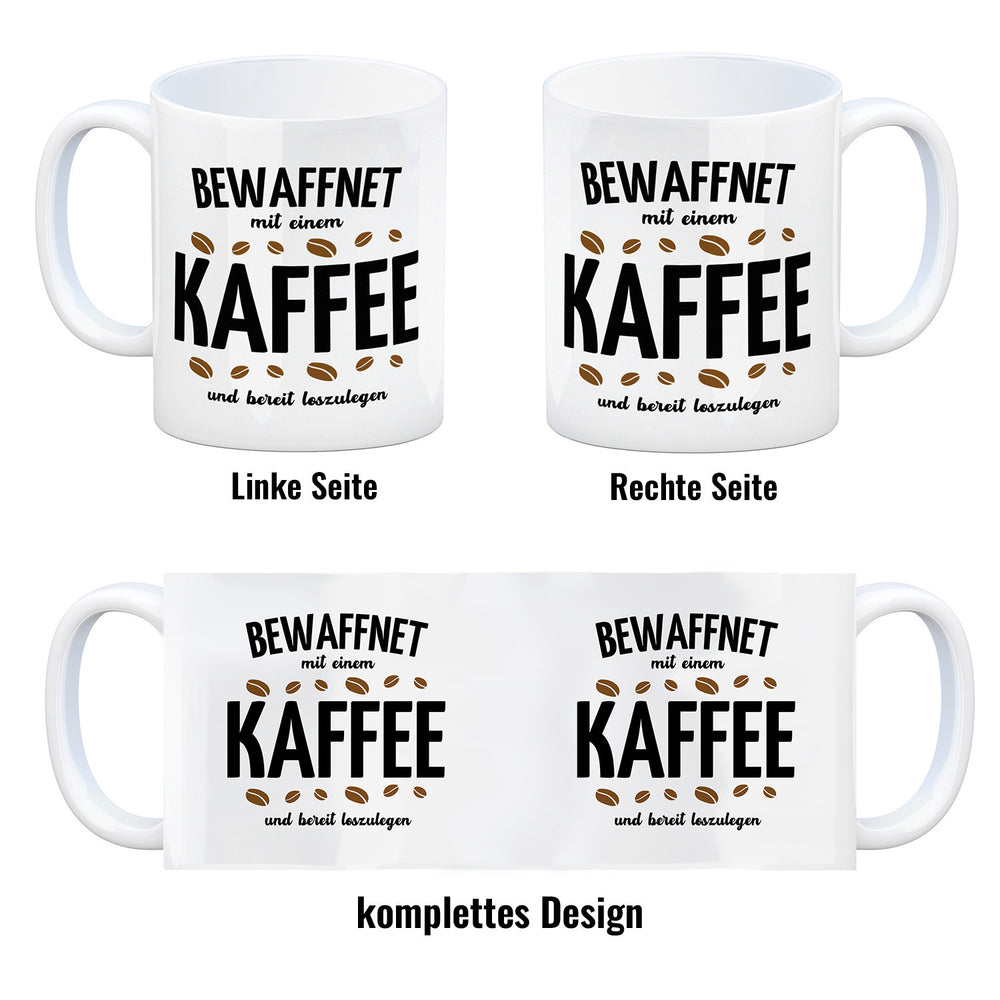 - 1x Kaffeebecher mit Spruch - Bewaffnet mit Kaffee und bereit loszulegen in der gewählten Ausführung