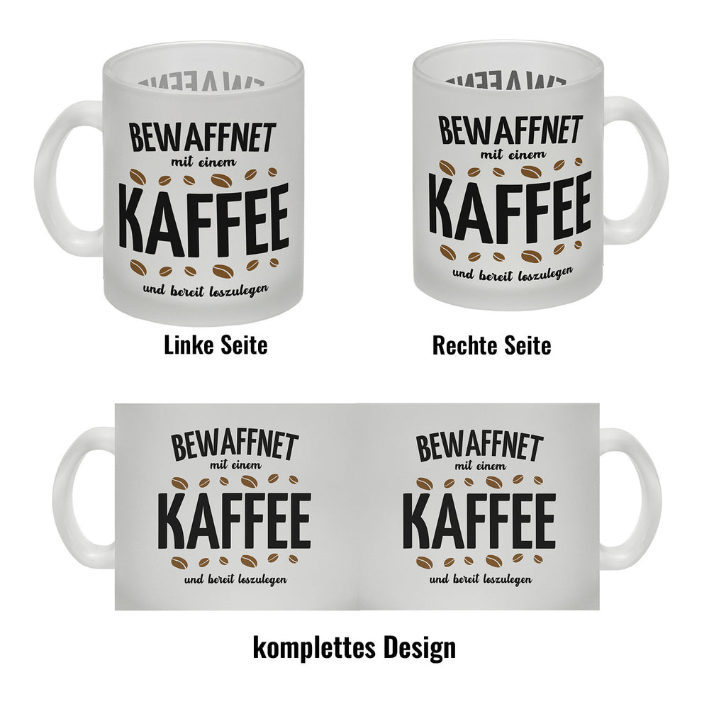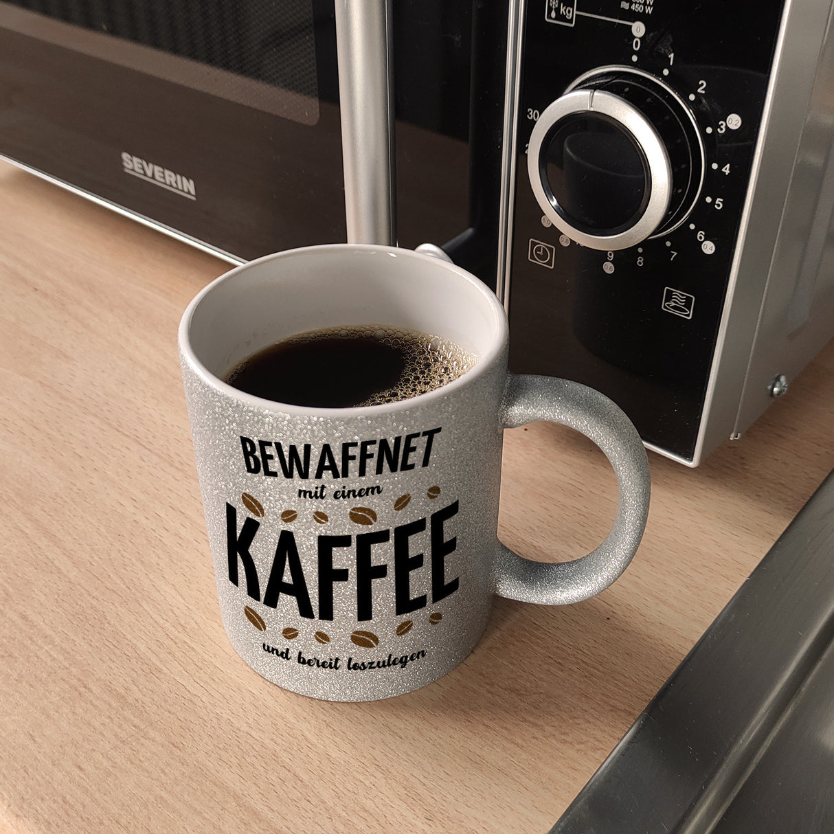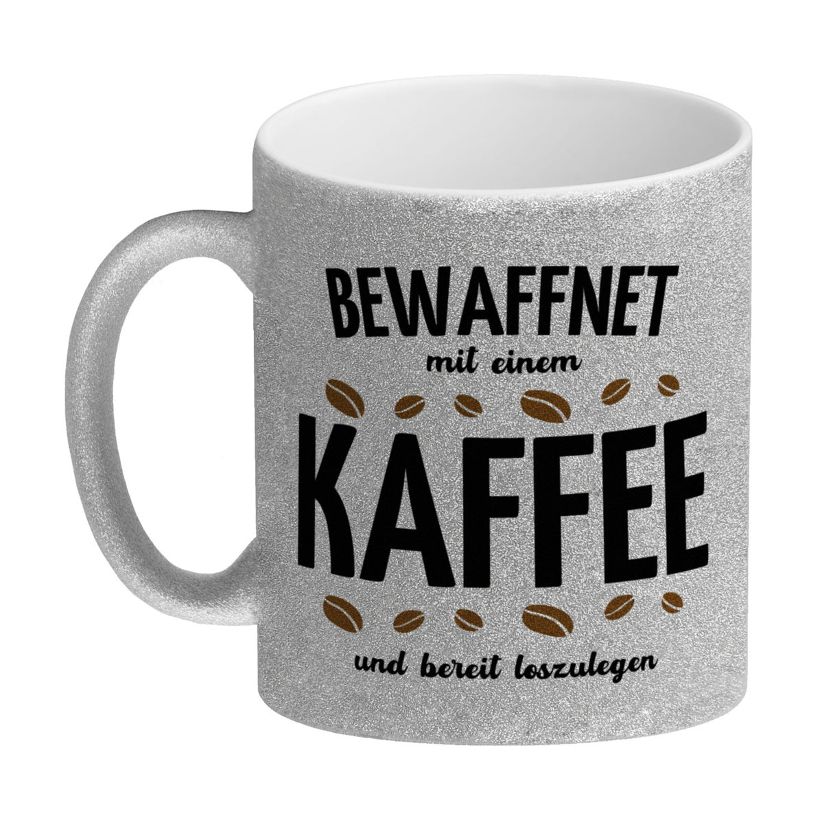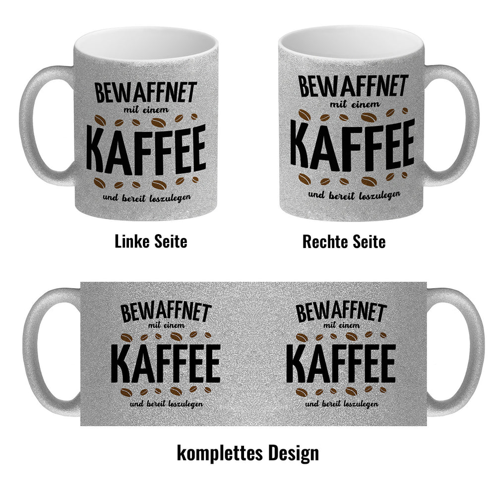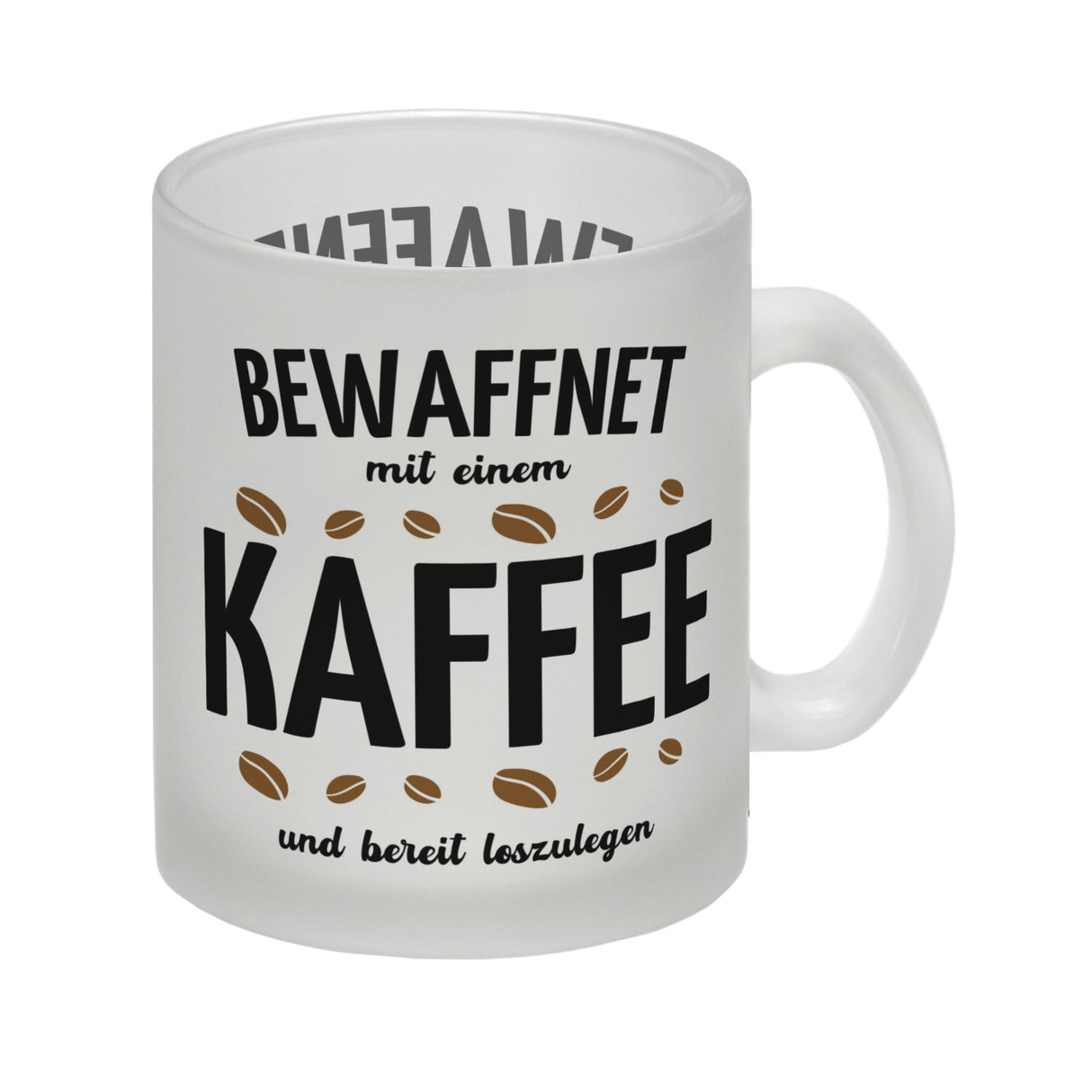 - 1x Kaffeebecher mit Spruch - Bewaffnet mit Kaffee und bereit loszulegen in der gewählten Ausführung