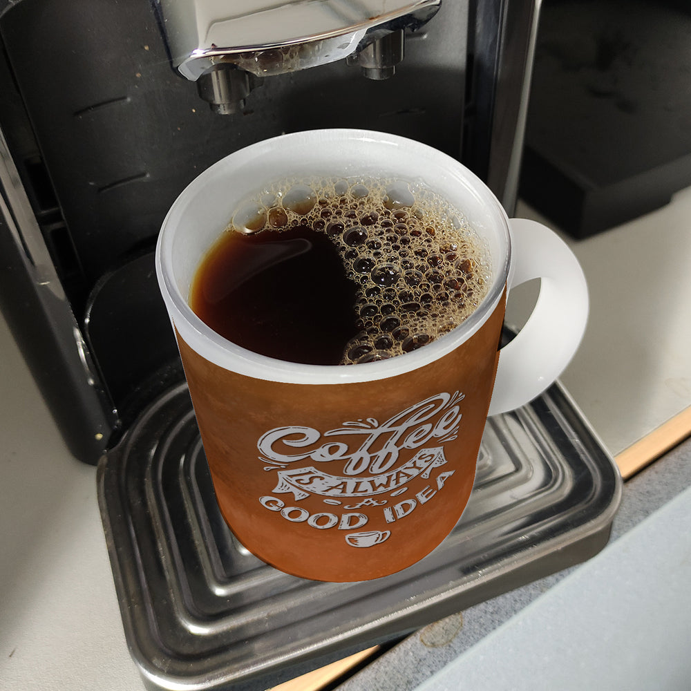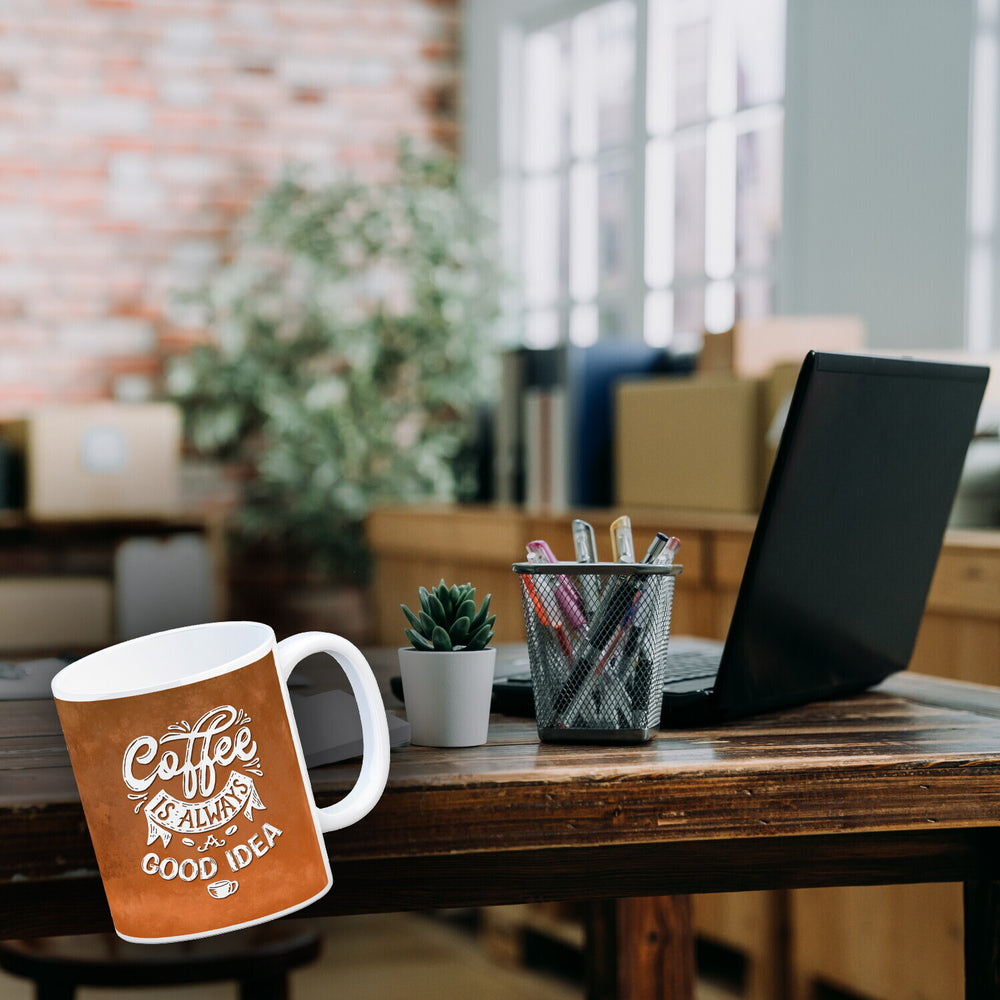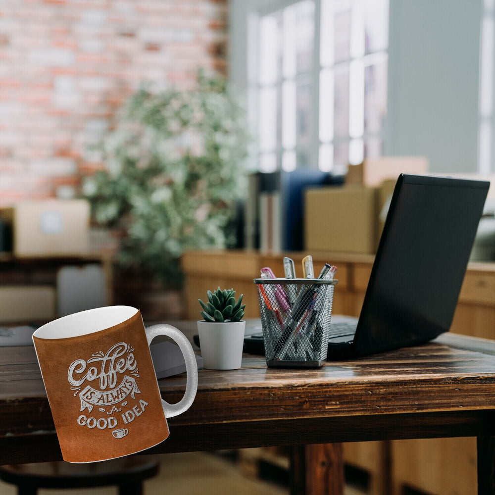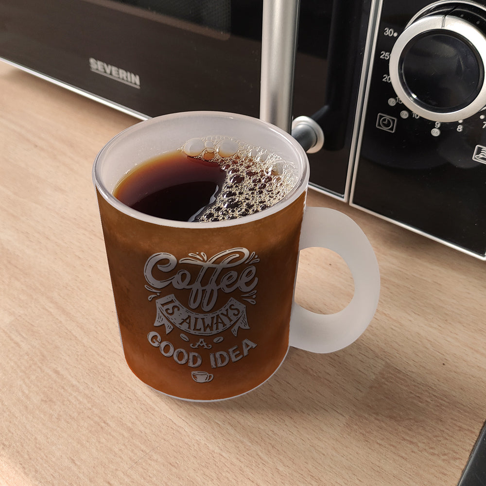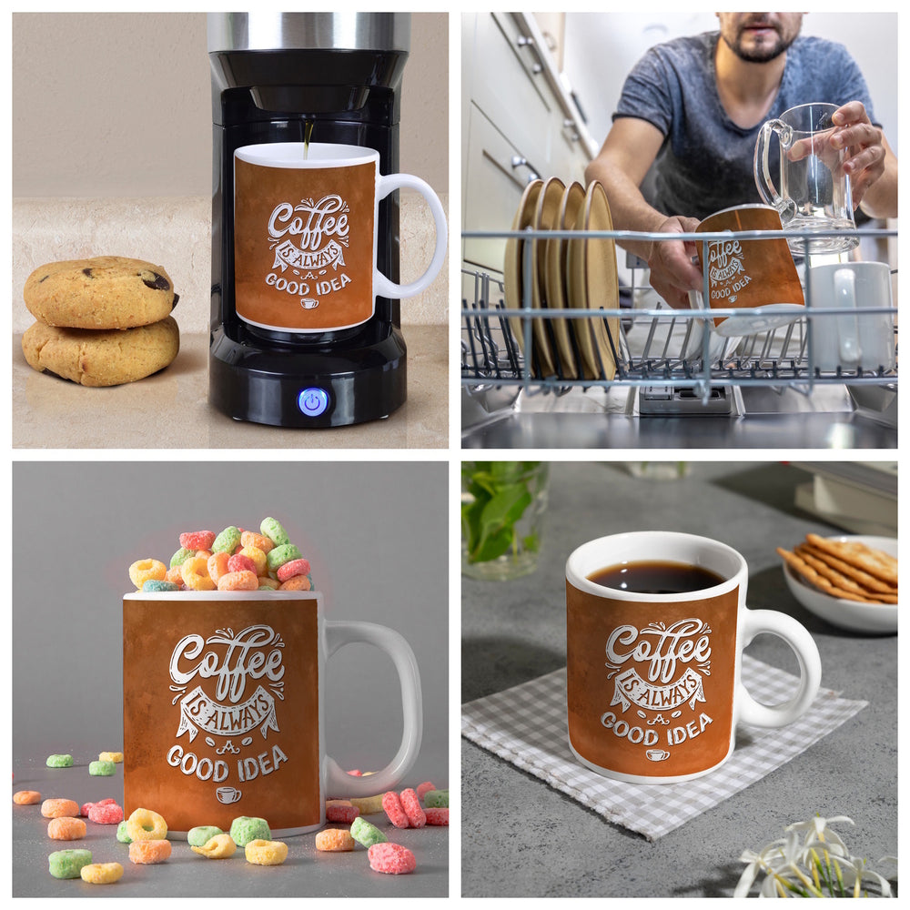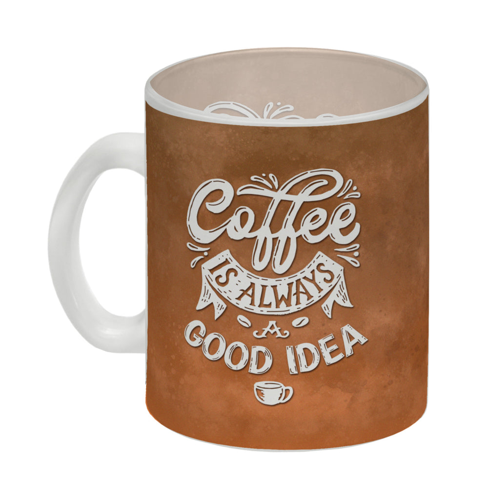 - 1x Kaffeebecher mit Spruch: Coffee is always a good idea in der gewählten Ausführung