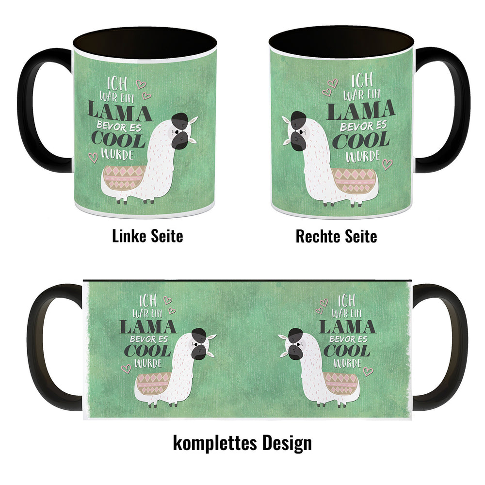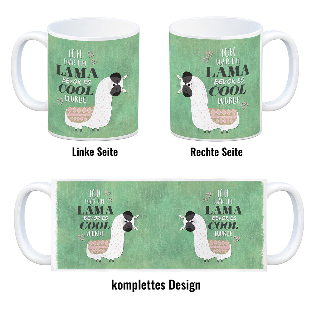 - 1x Kaffeebecher mit Spruch: Ich war ein Lama bevor es ... in der gewählten Ausführung