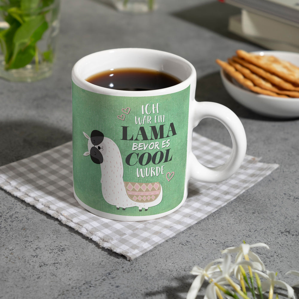 Kaffeebecher mit Spruch: Ich war ein Lama bevor es ...
