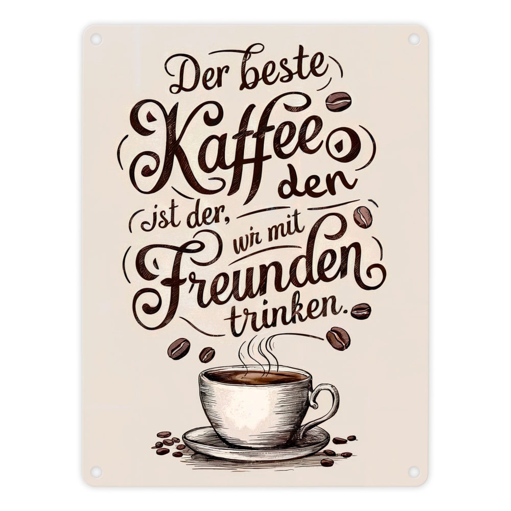 - 1x Kaffeetasse mit Zitat Metallschild in 15x20 cm - Bester Kaffee mit Freunden in der gewählten Größe