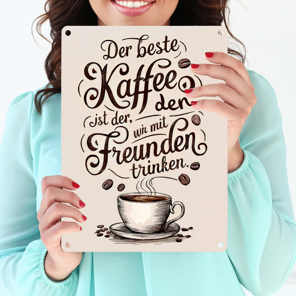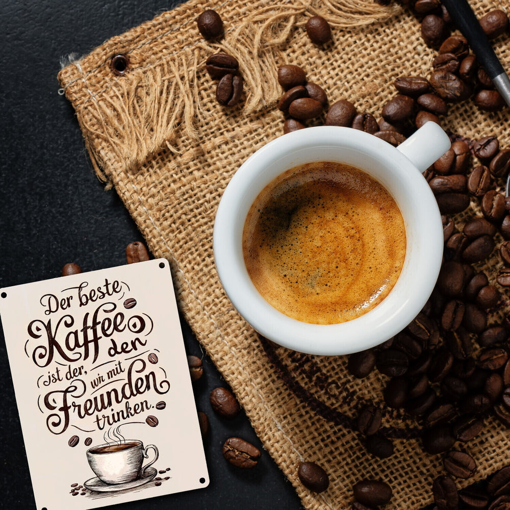 - Hast du Freunde und trinkst gerne Kaffee? Dann ist unser Metallschild mit Zitat genau das Richtige für dich! Der BESTE Kaffee ist der, den wir mit Freunden TRINKEN. Lass uns zusammen lachen, schlürfen und den Dampf der Kaffeetasse genießen.
