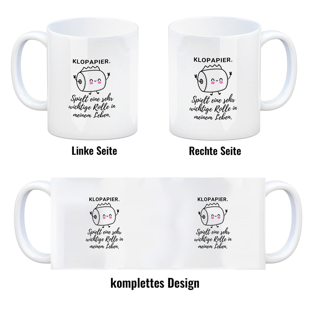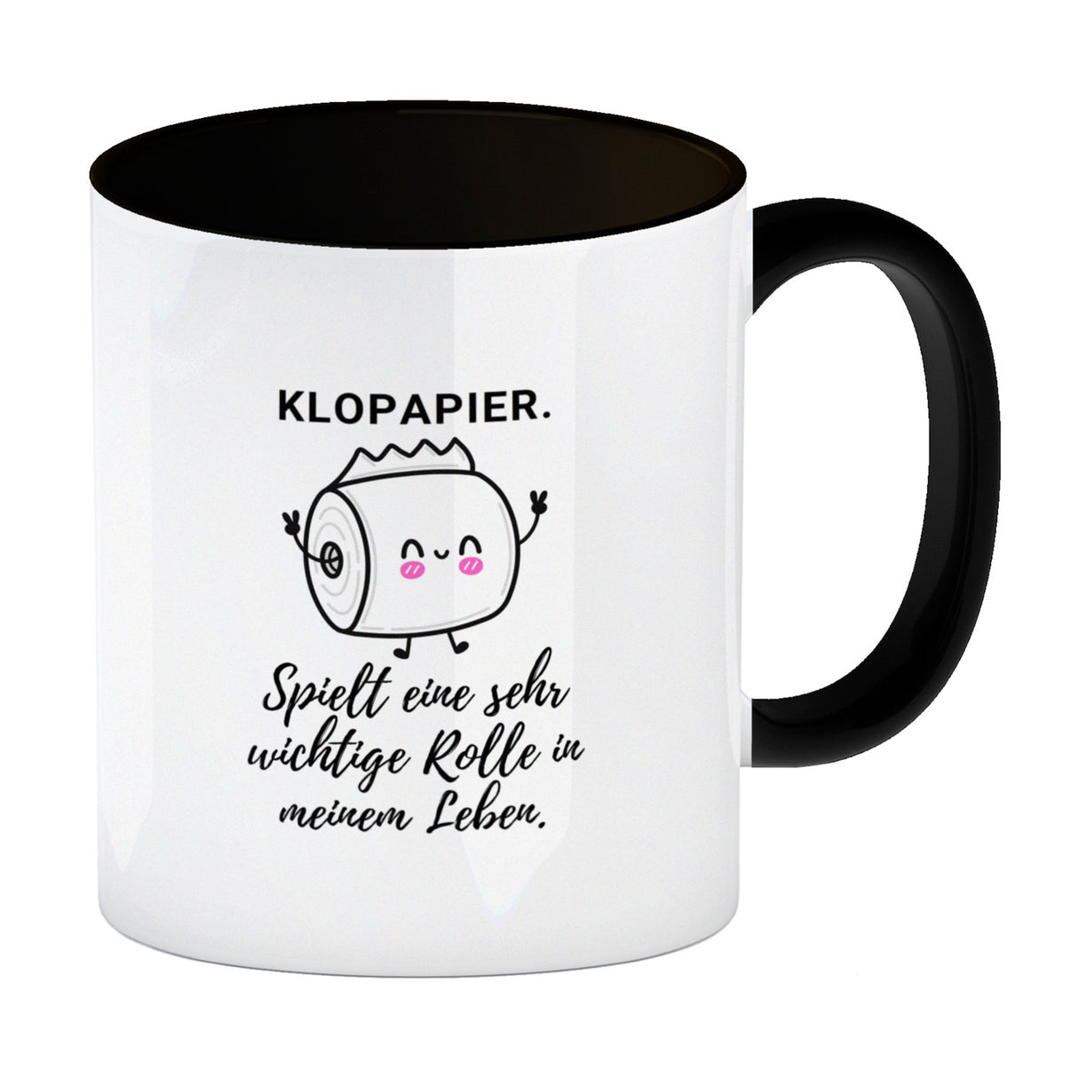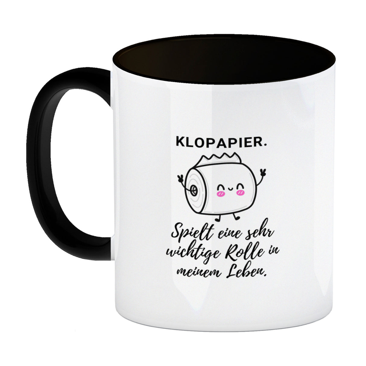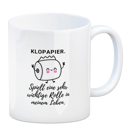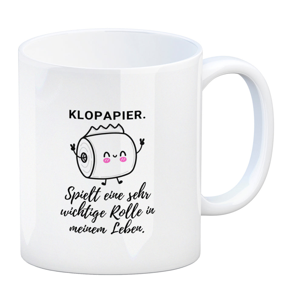 - Der lustige Kaffeebecher mit dem Motiv von einer Klopapierrolle ist genau das Richtige für alle, die gerne mal zu einem guten WC-Witz anstoßen. Der Spruch auf dem Becher: Klopapier spielt eine sehr wichtige Rolle in meinem Leben lässt jede Menge Platz für Scherze und Lacher.