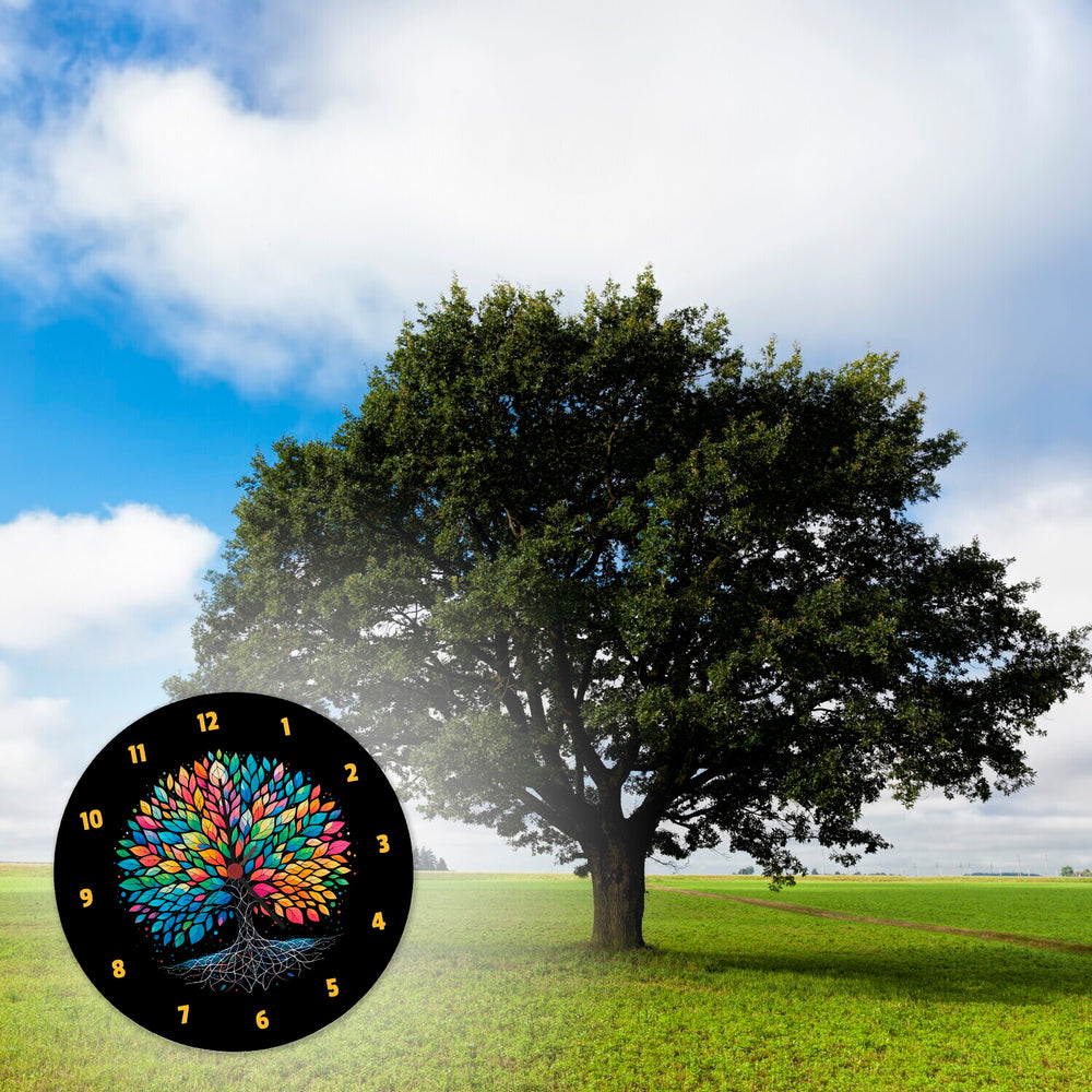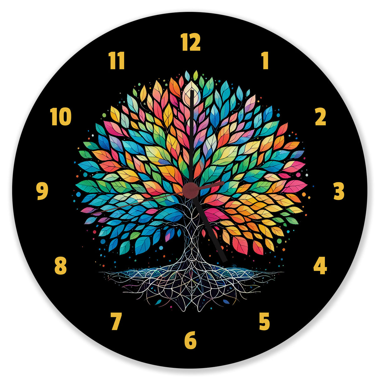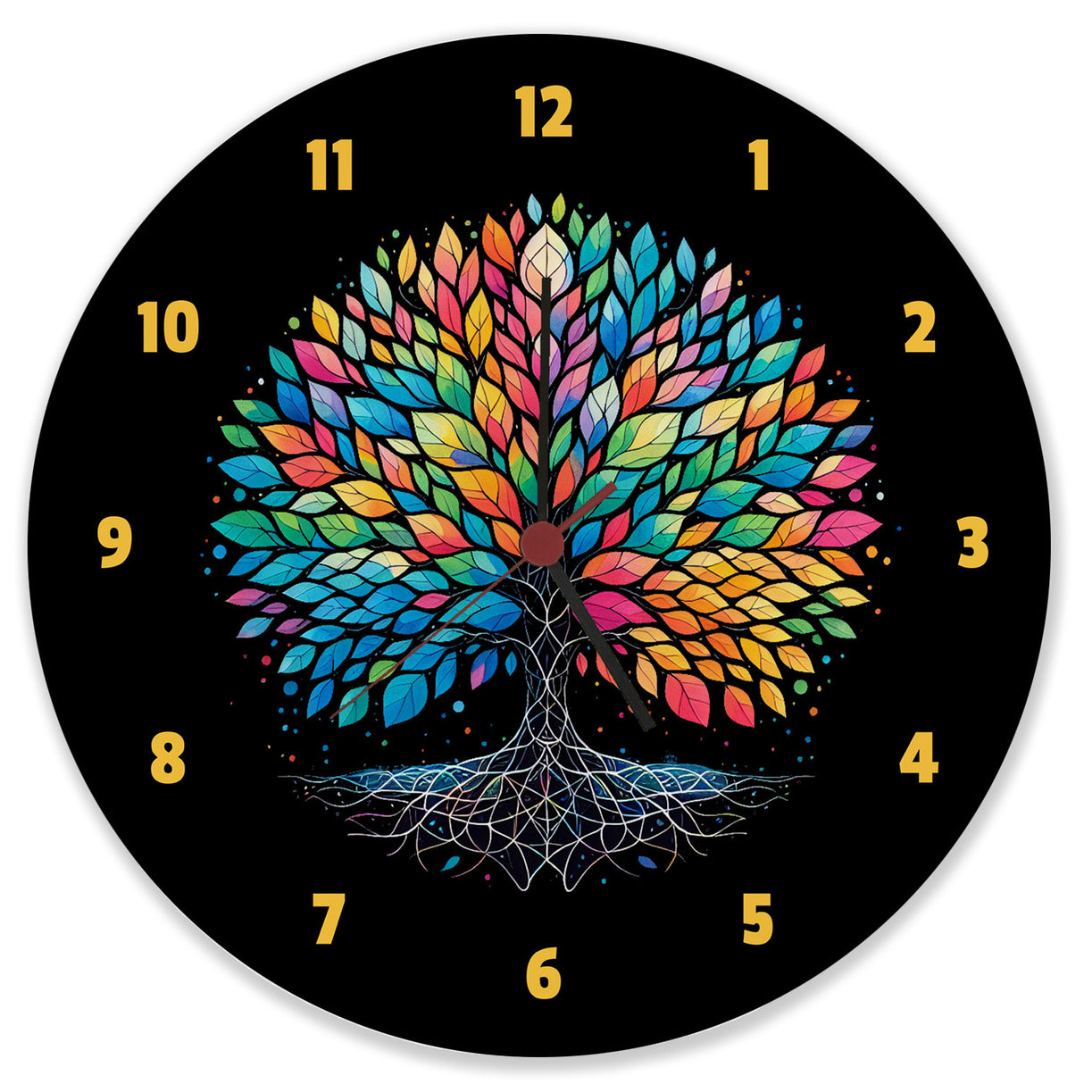 - Diese bunte Wanduhr zaubert die Farben des Regenbogens in Ihr Wohnzimmer! Das Lebensbaum Design fängt die Magie der Natur ein und lässt jeden Raum vor Lebensfreude sprudeln. Perfekt für die Familie.