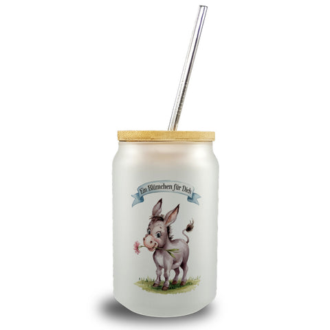 Ein Blümchen für dich Trinkglas mit Bambusdeckel Aquarell Esel