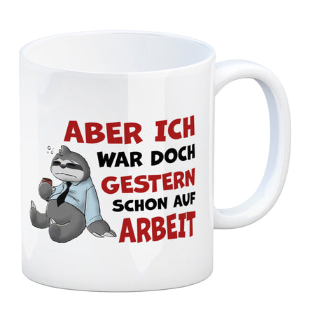 Aber ich war doch gestern schon auf Arbeit Faultier Kaffeebecher