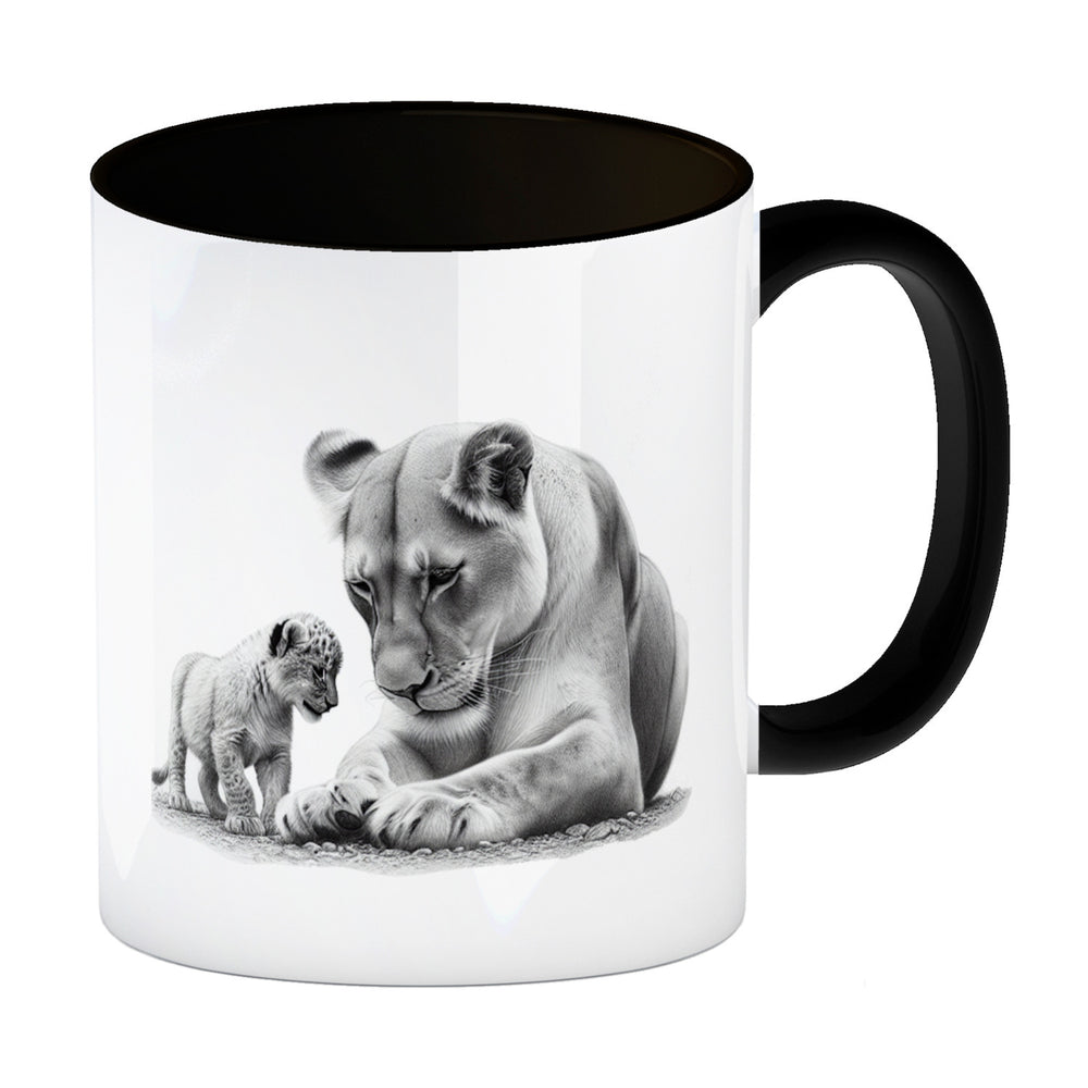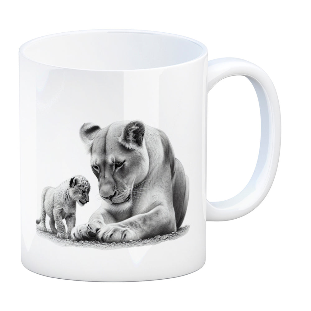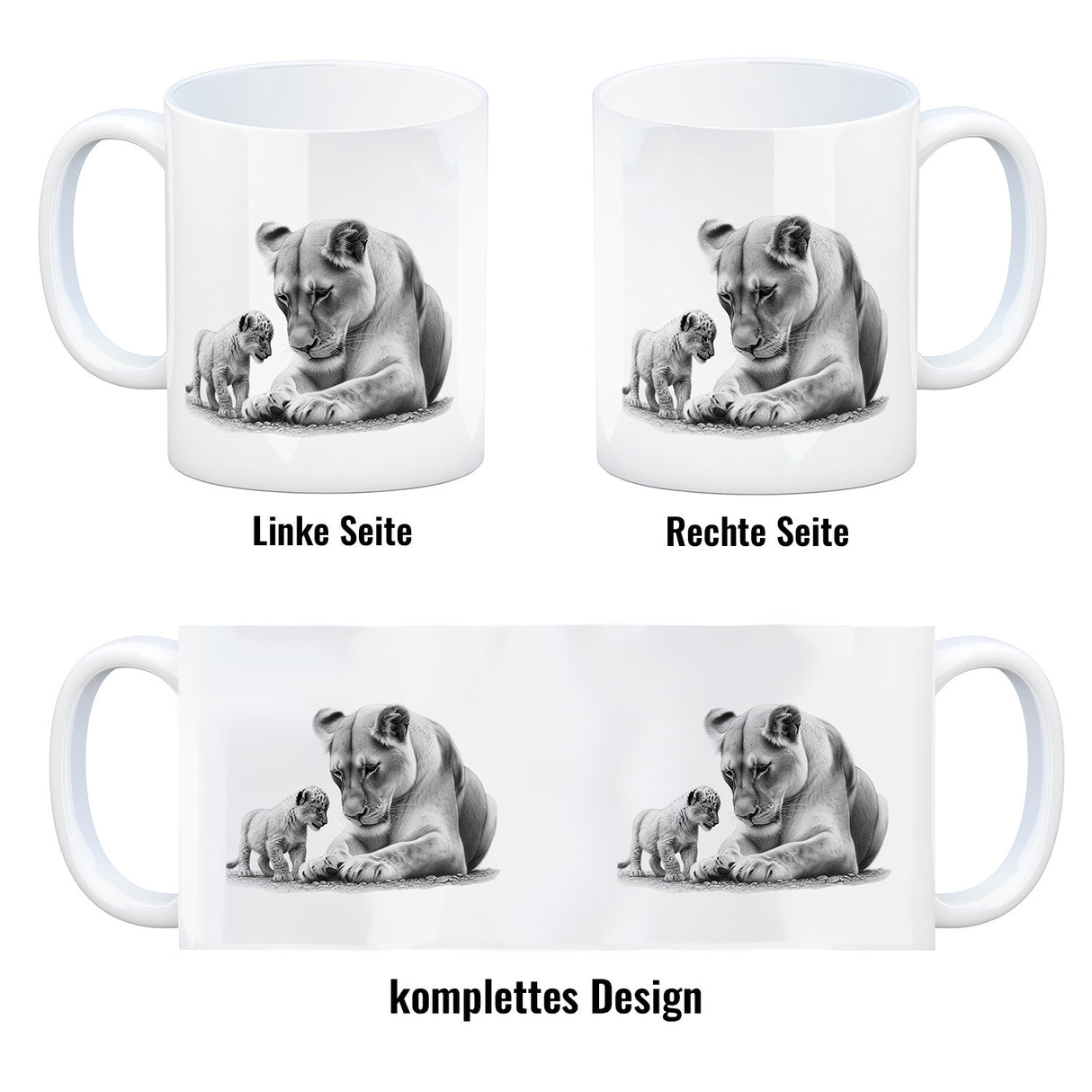 - 1x Liegende Löwin mit Babylöwe Kaffeebecher in der gewählten Ausführung