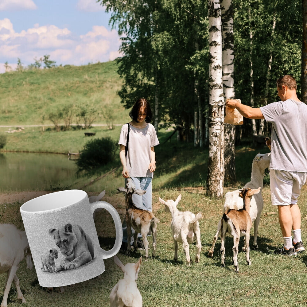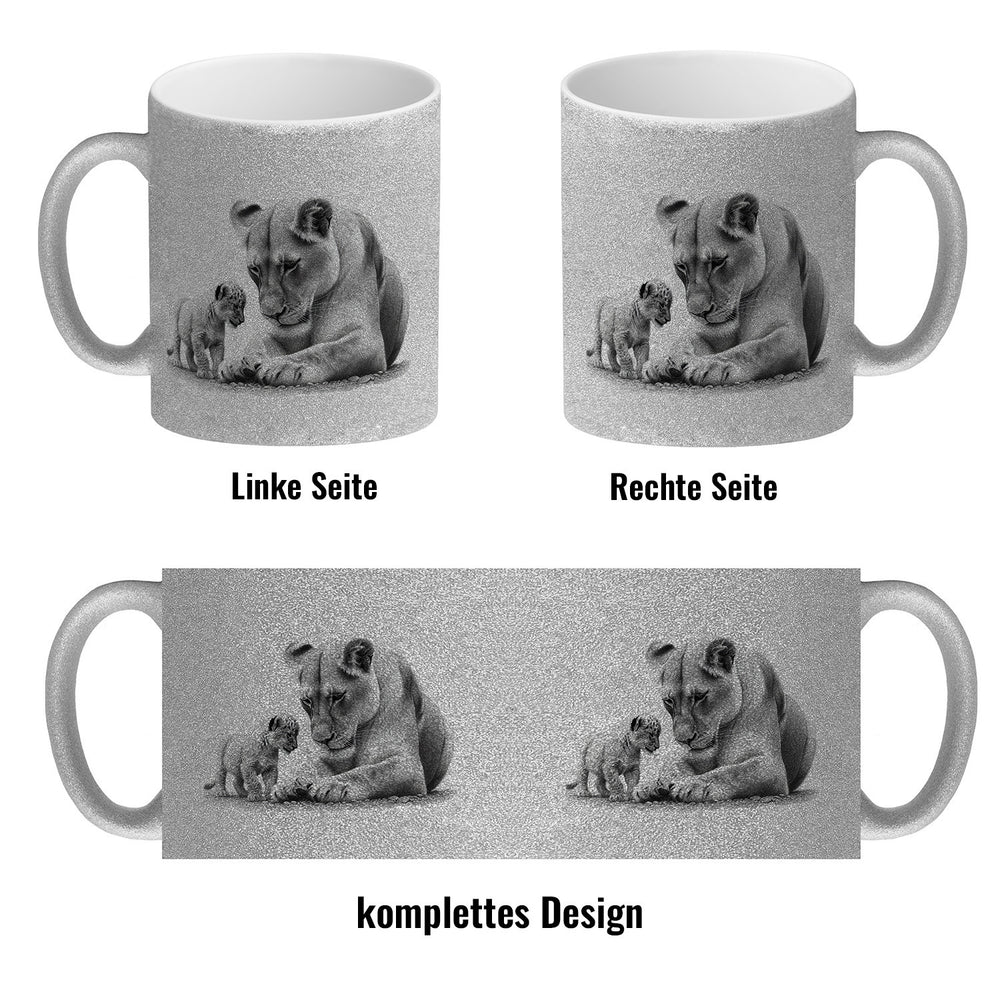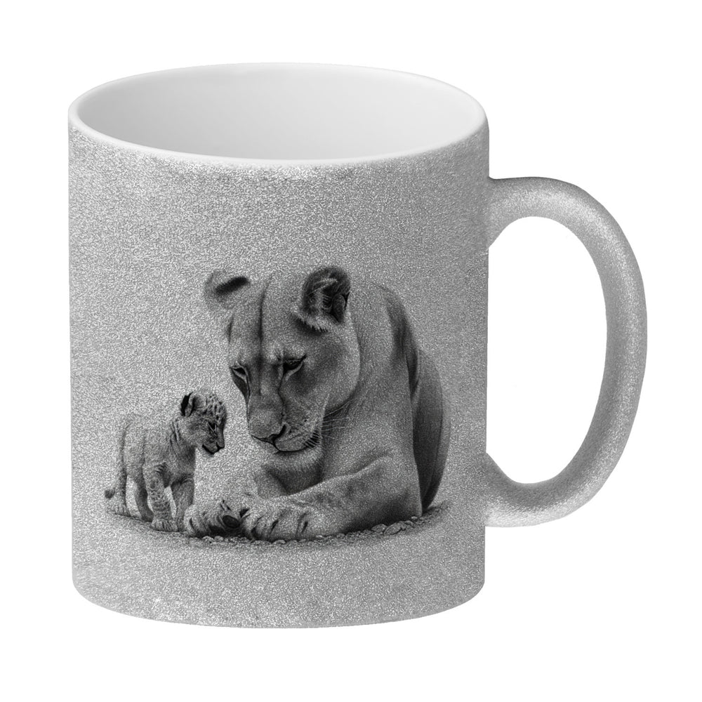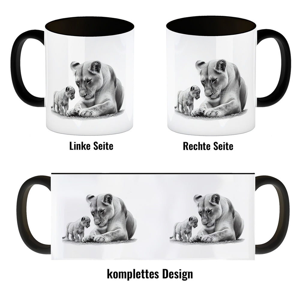 - 1x Liegende Löwin mit Babylöwe Kaffeebecher in der gewählten Ausführung