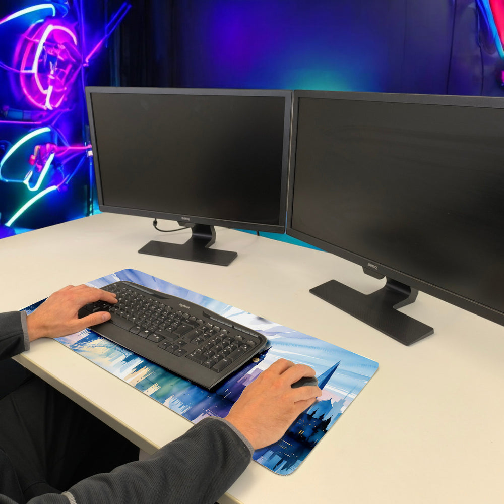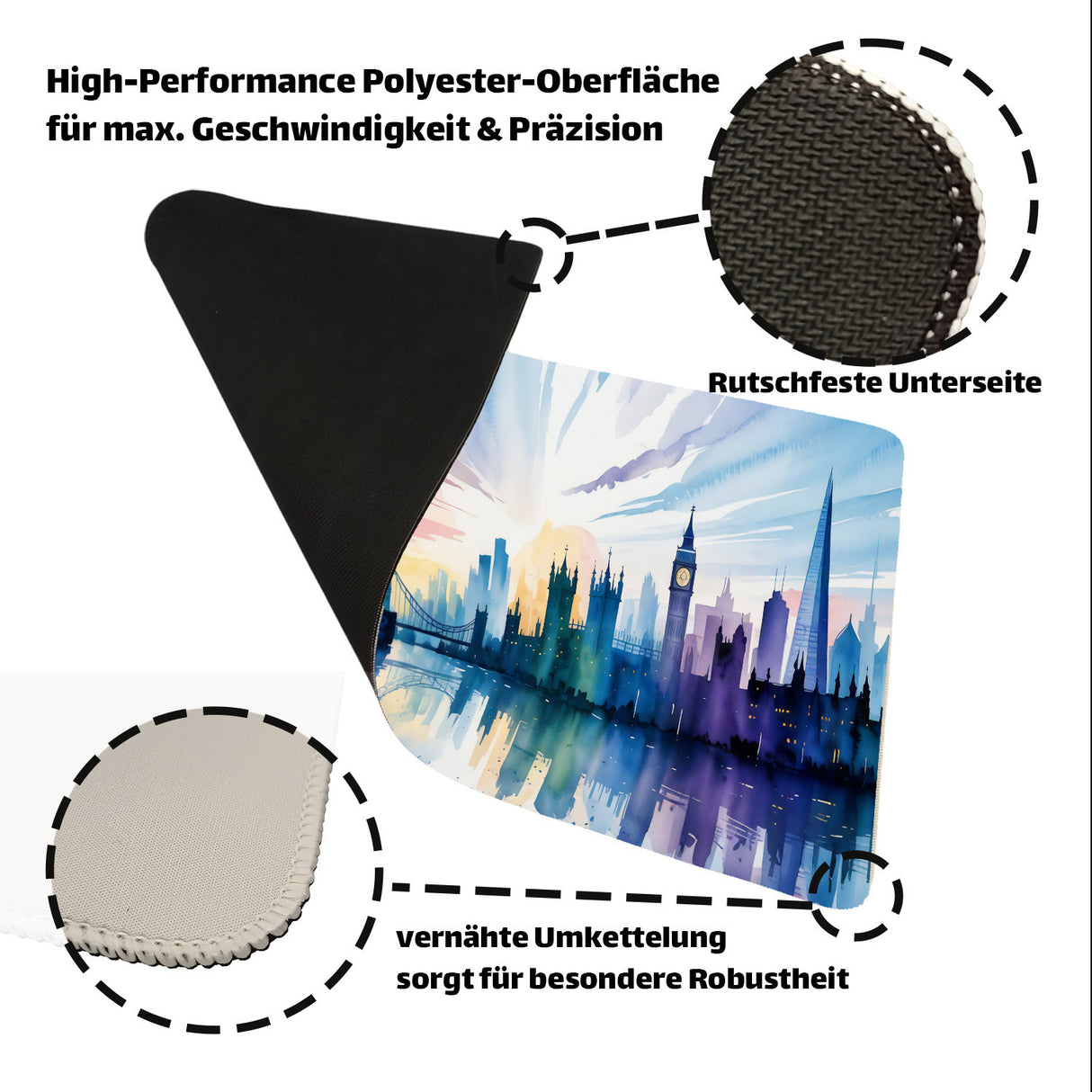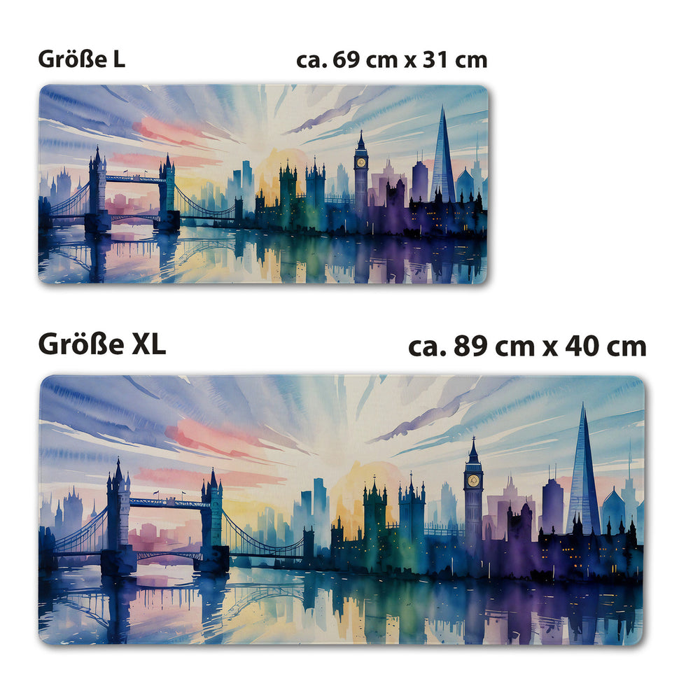 - 1x London Skyline Aquarell Schreibtischunterlage 69x31cm XXL Mauspad in der gewählten Größe