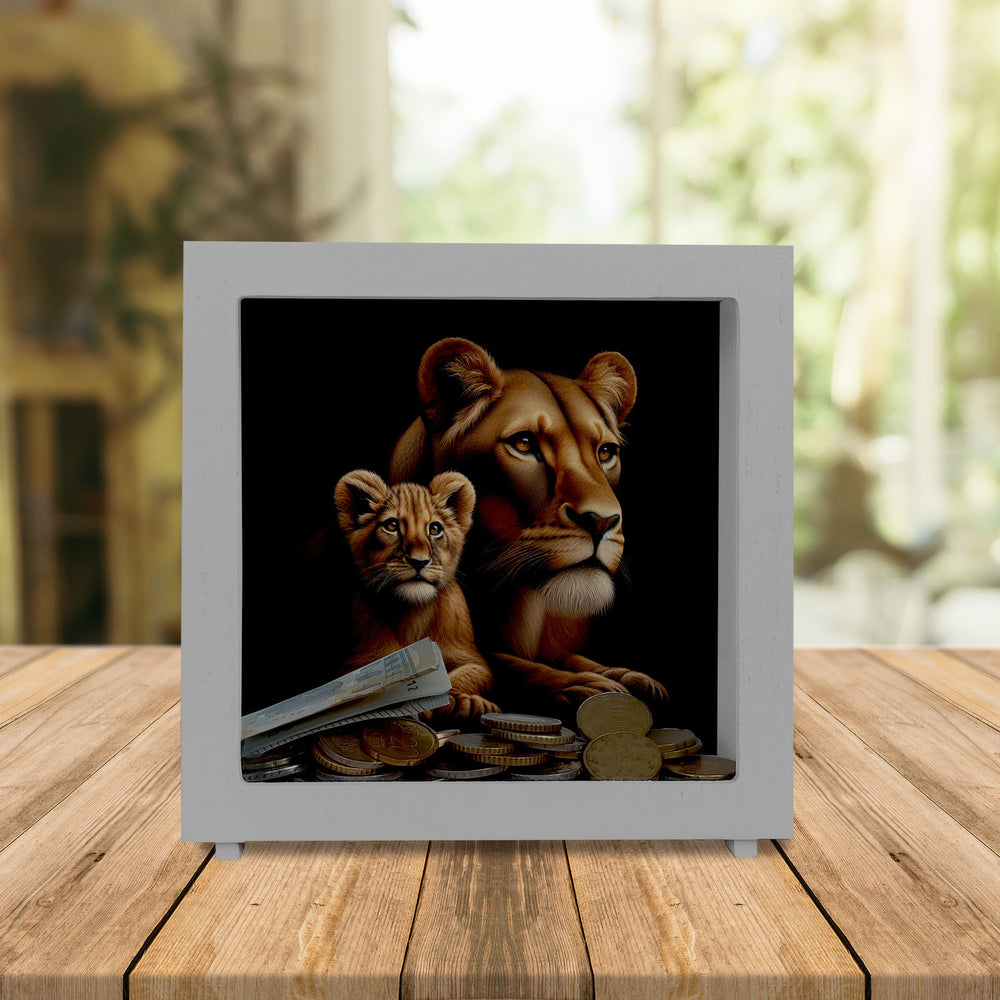 - Entdecke den tierischen Spar-Spaß mit unserer Löwin Babylöwe Spardose! Dieses faszinierende Geldversteck zeigt eine königliche Löwin, die liebevoll neben ihrem kecken Kleinen döst. Optimal für Mini-Sparer, die ihre Münzen mit einem Brüllen anhäufen wollen! Ideal als Geldgeschenk für kleine und große Raubkatzen-Fans.