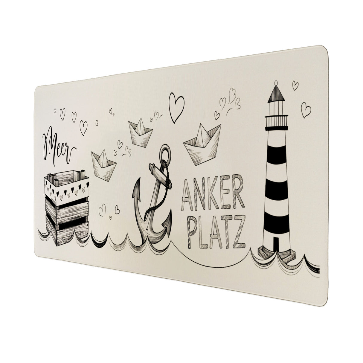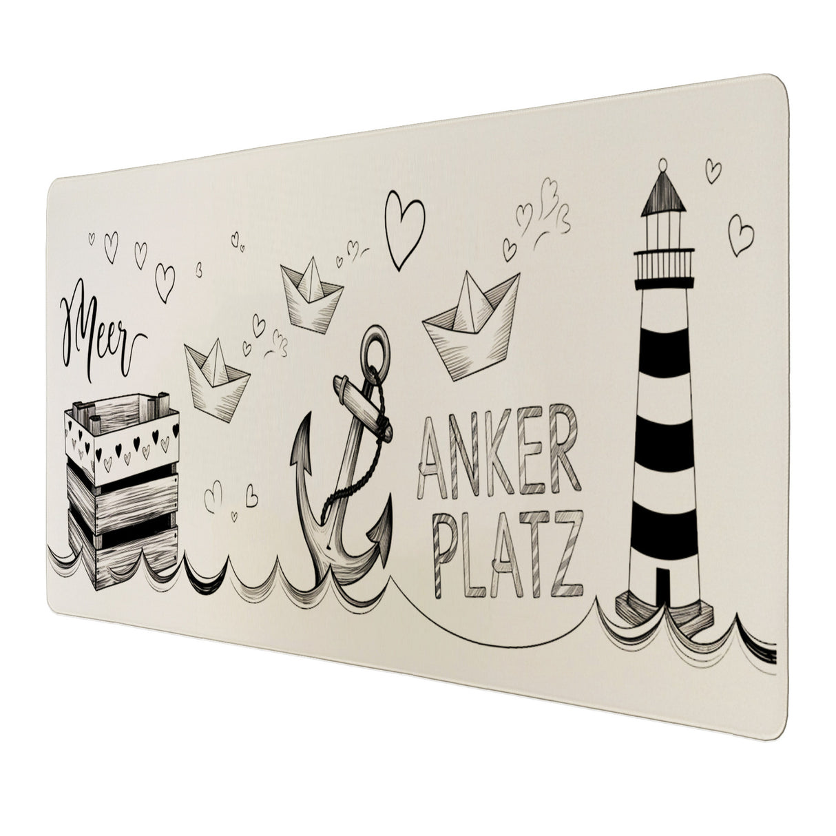 Maritim ANKER PLATZ Schreibtischunterlage 69x31cm XXL Mauspad mit Herzmotiven